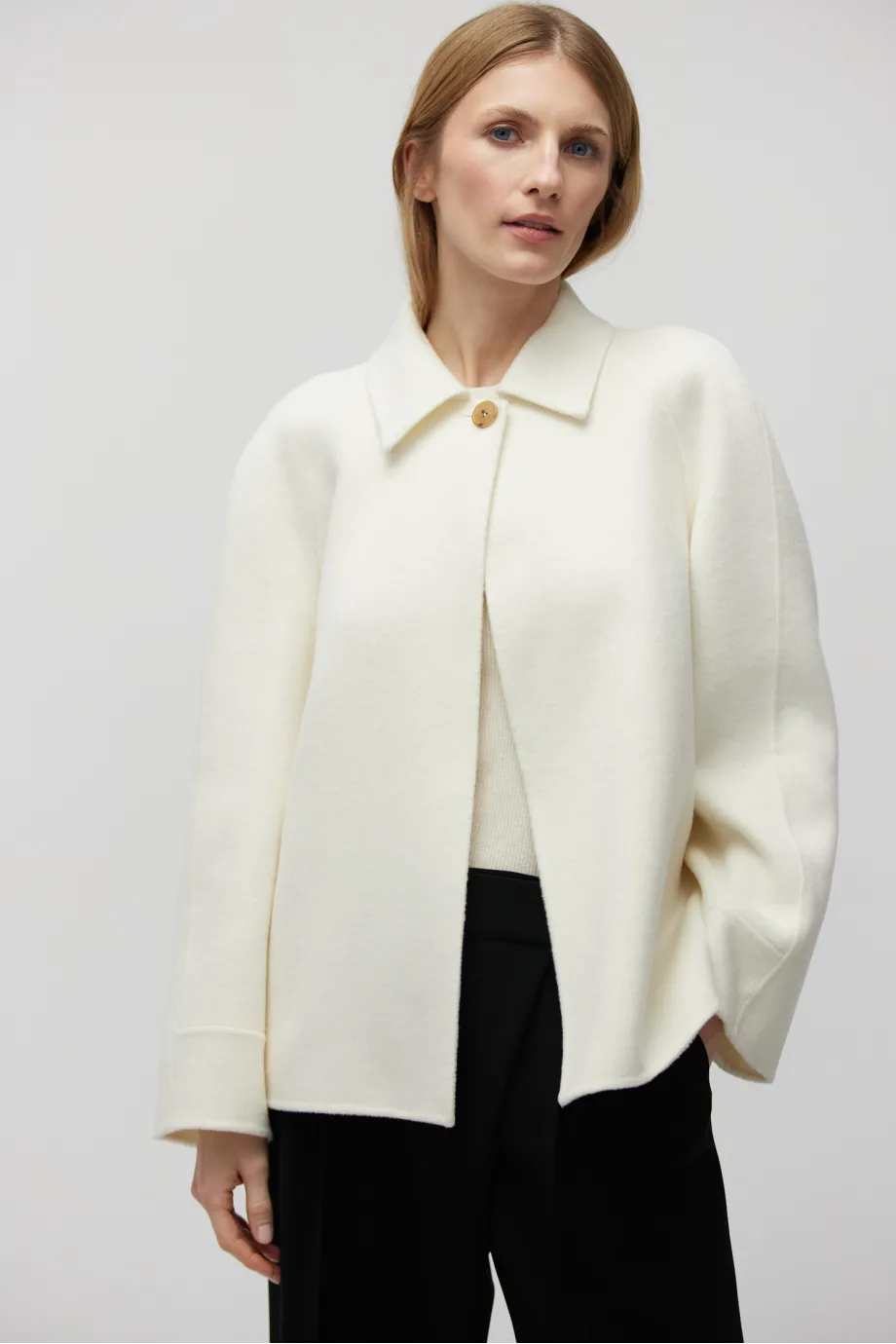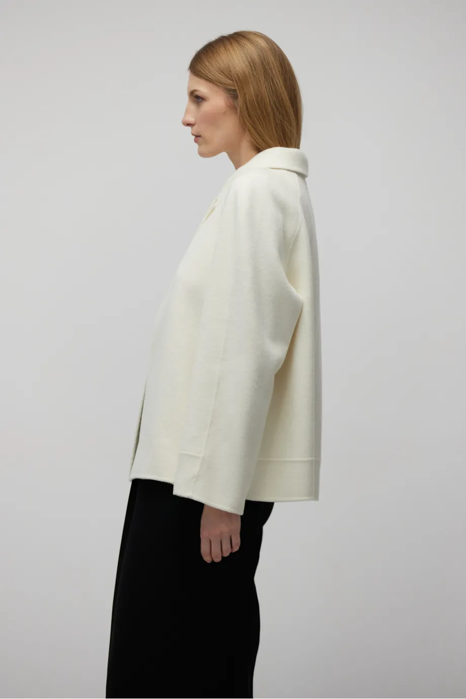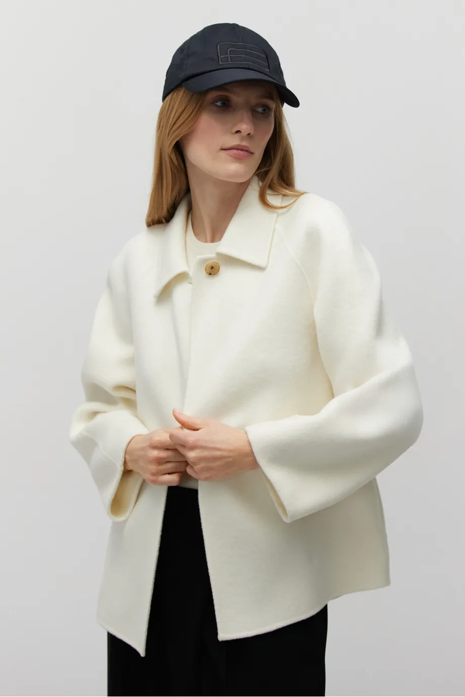 Dlouhý rukáv, našité kapsy, zapínání na přírodní knoflík z rohoviny.