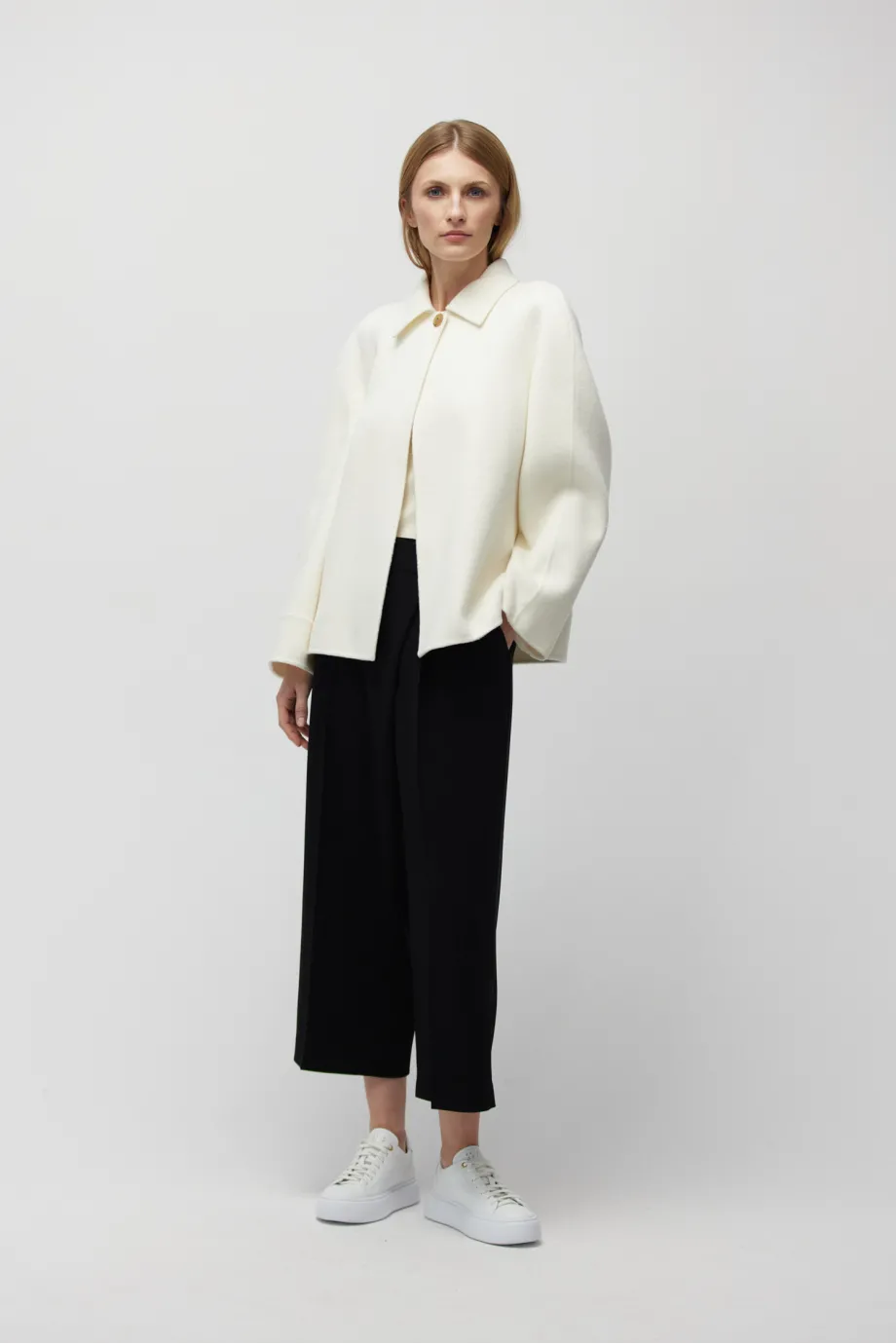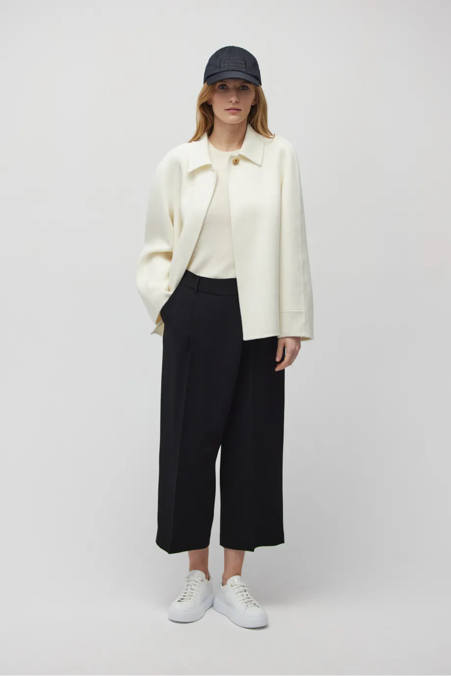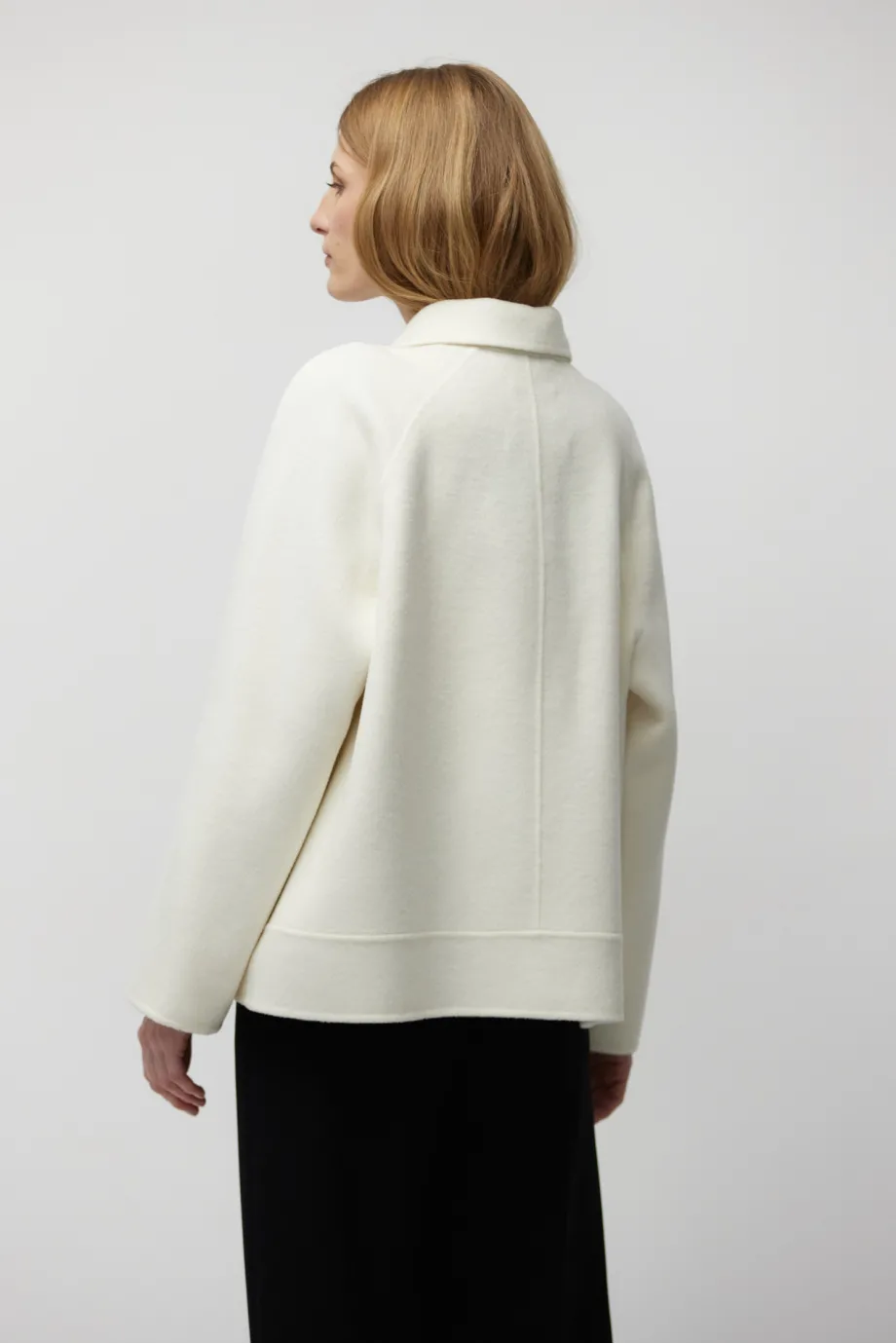 Dlouhý rukáv, našité kapsy, zapínání na přírodní knoflík z rohoviny.