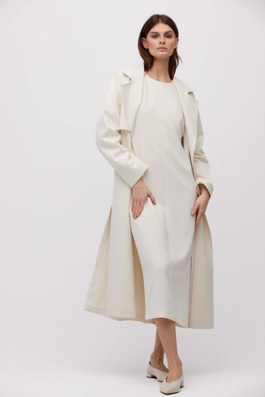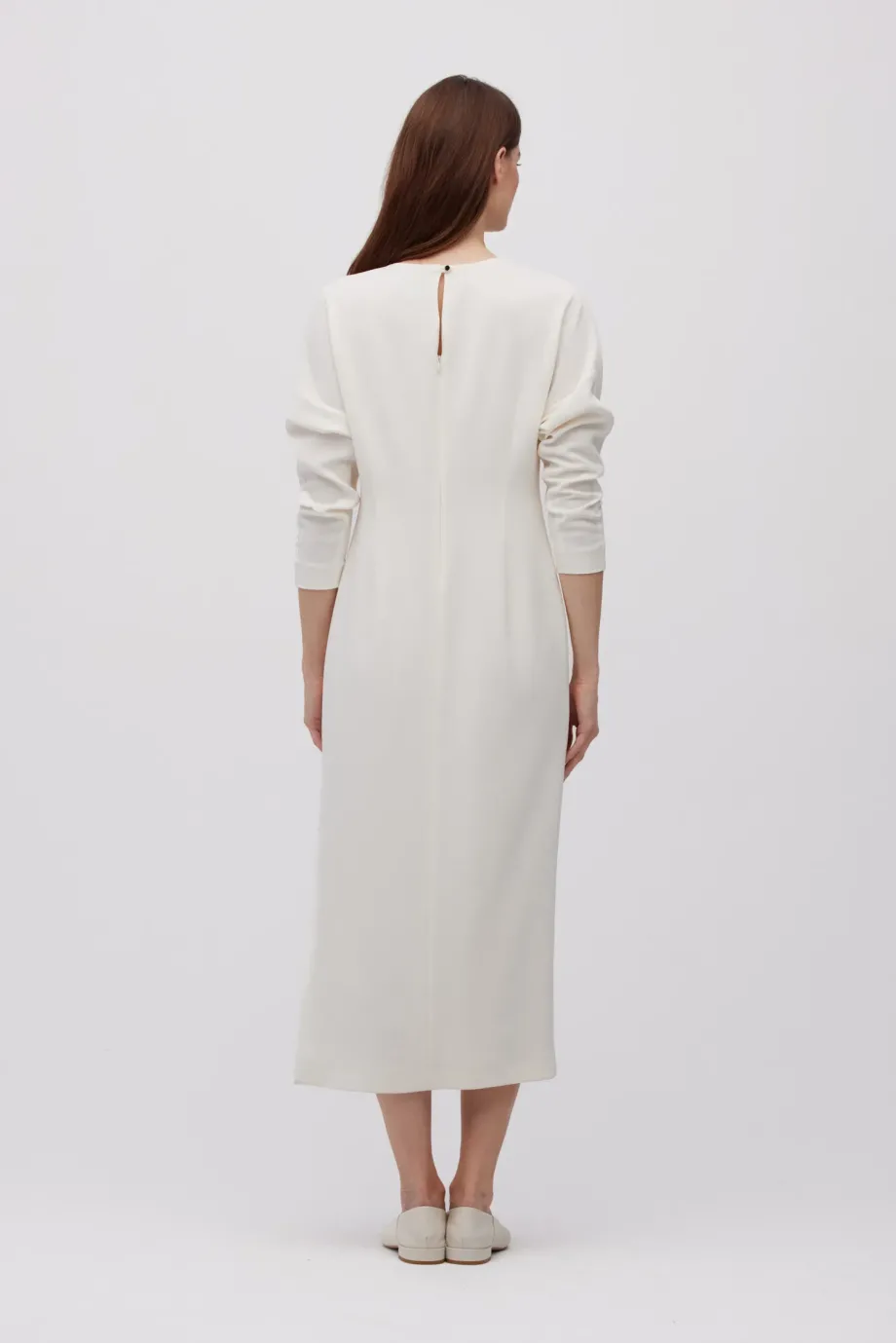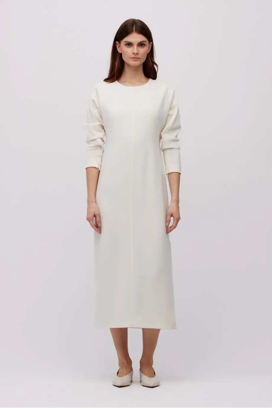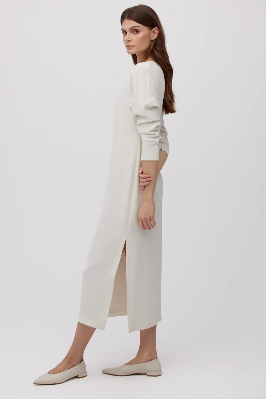 Midi šaty v smetanově bílé barvě s kimono rukávy.