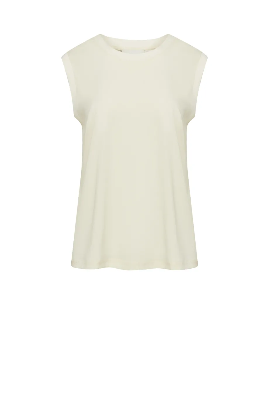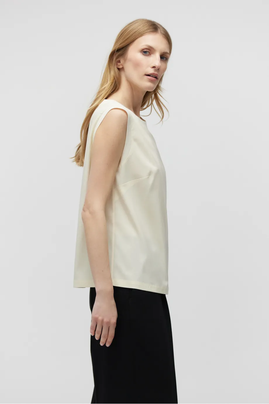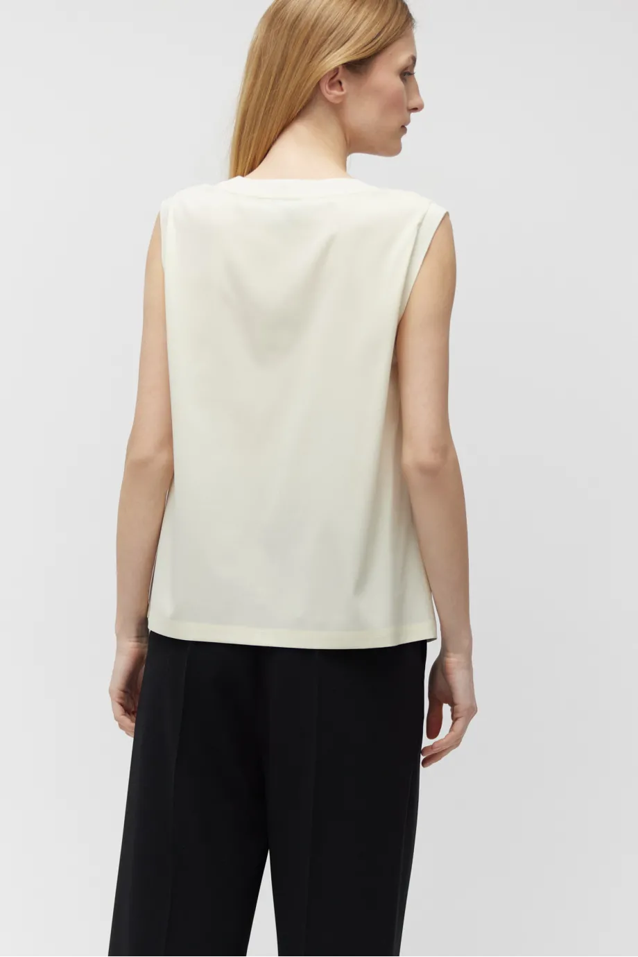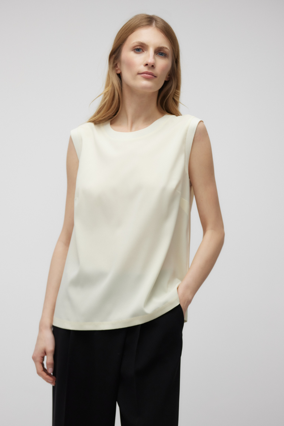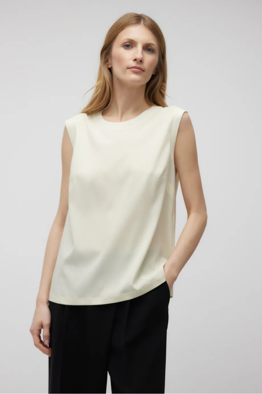 Široká ramínka, kulatý výstřih, jednoduchý, volný střih.