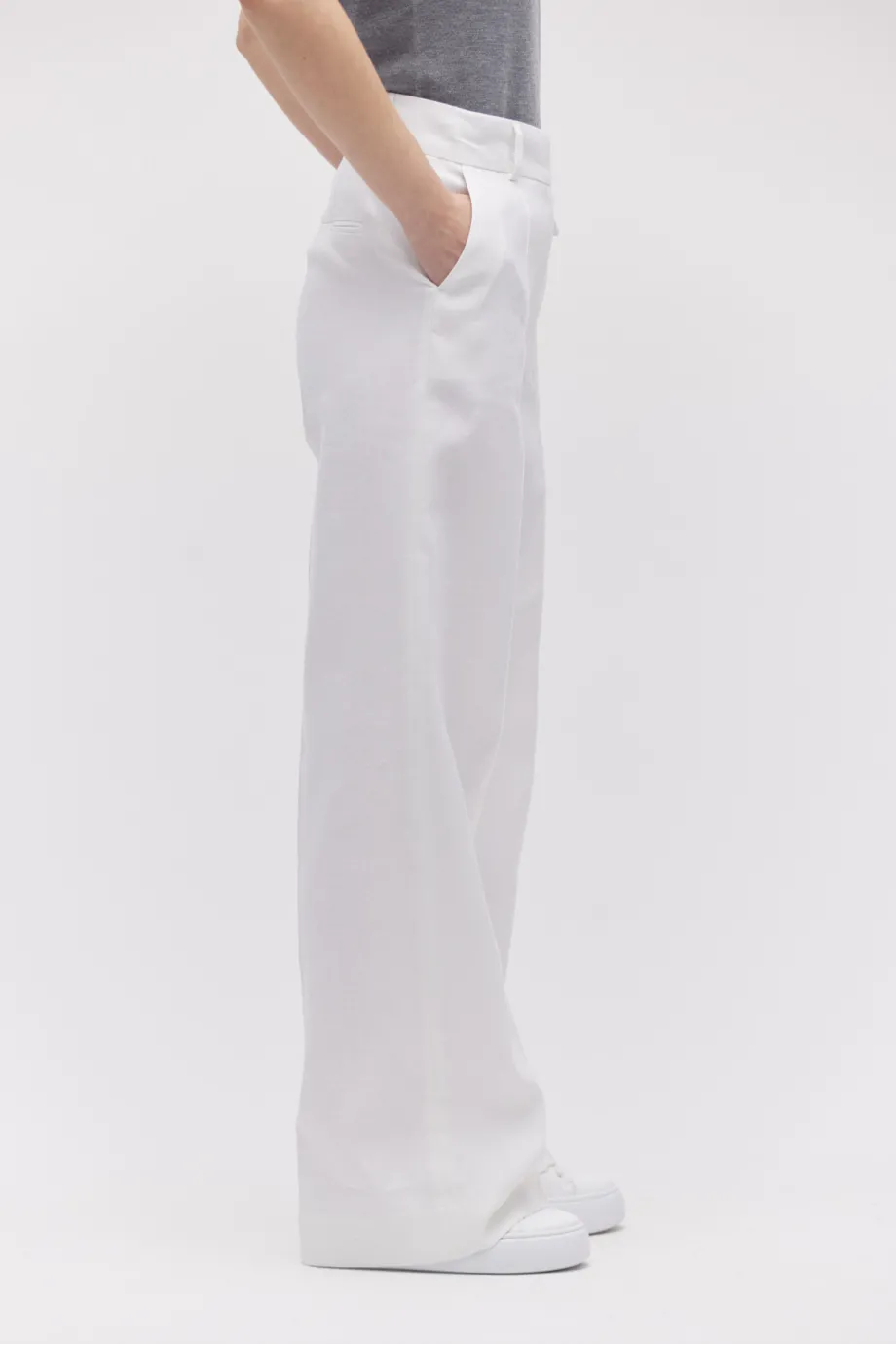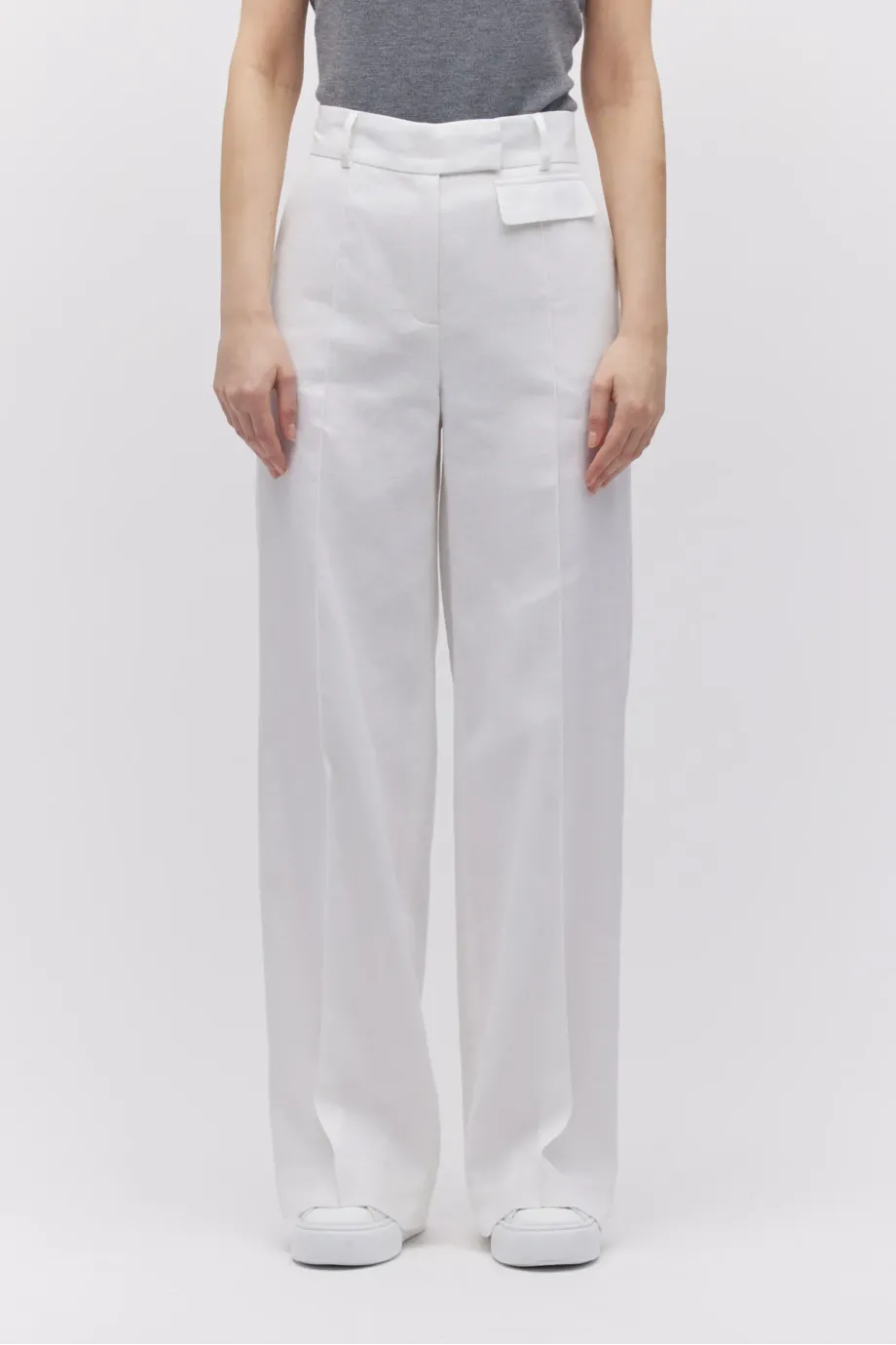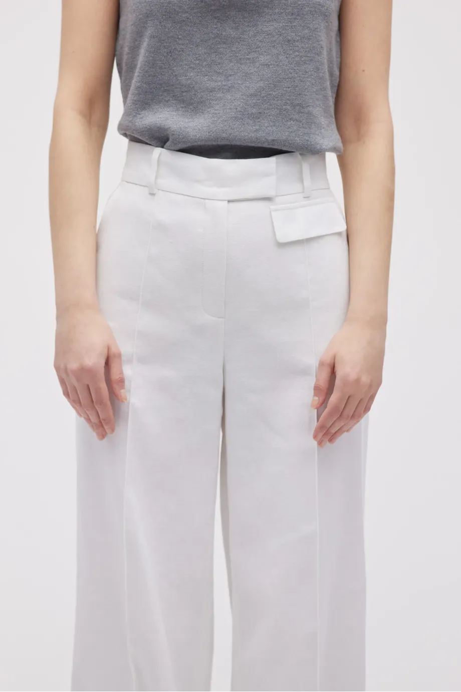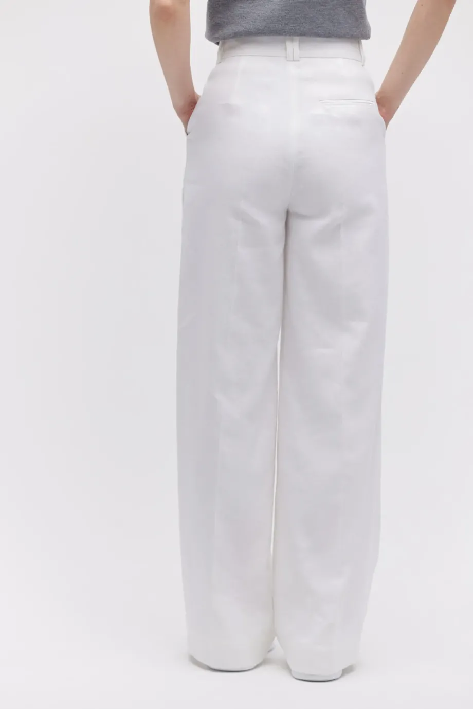 Bílé kalhoty z bavlny a lnu s jednoduchým, širším střihem se záložkami.