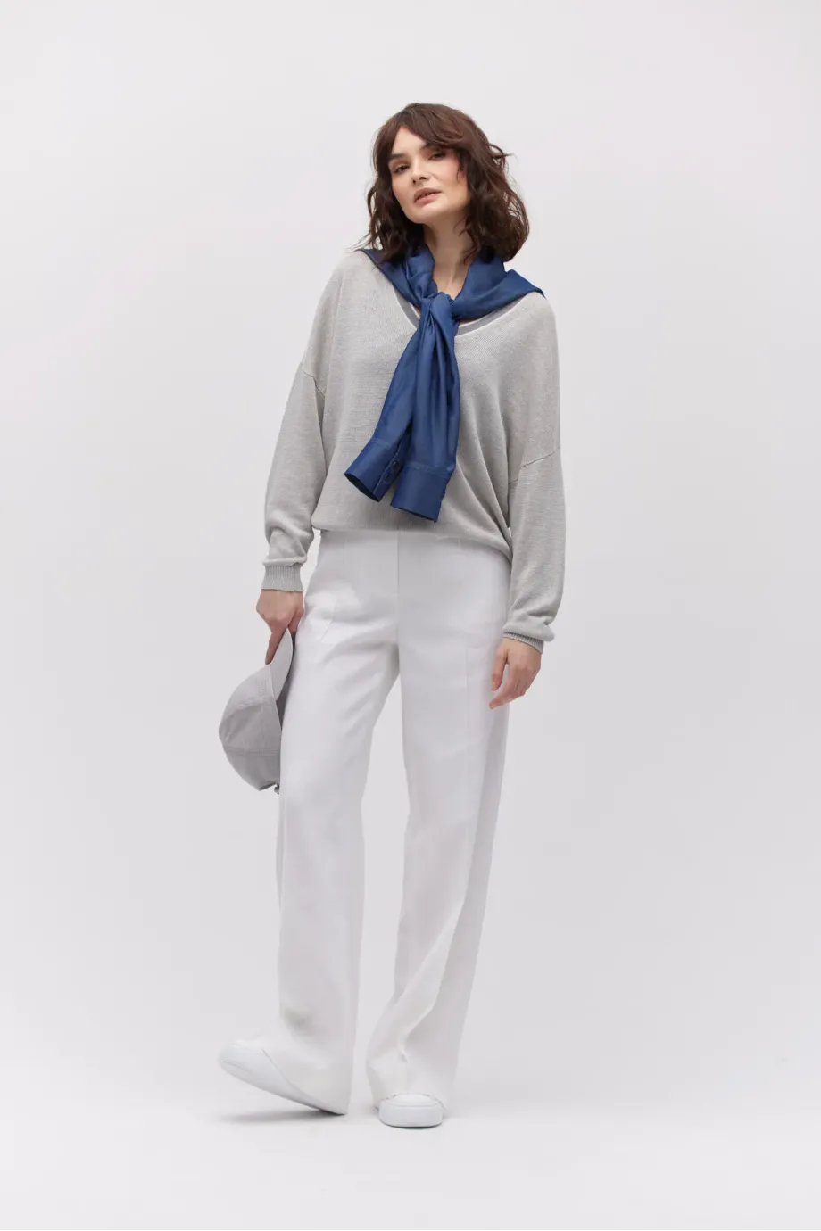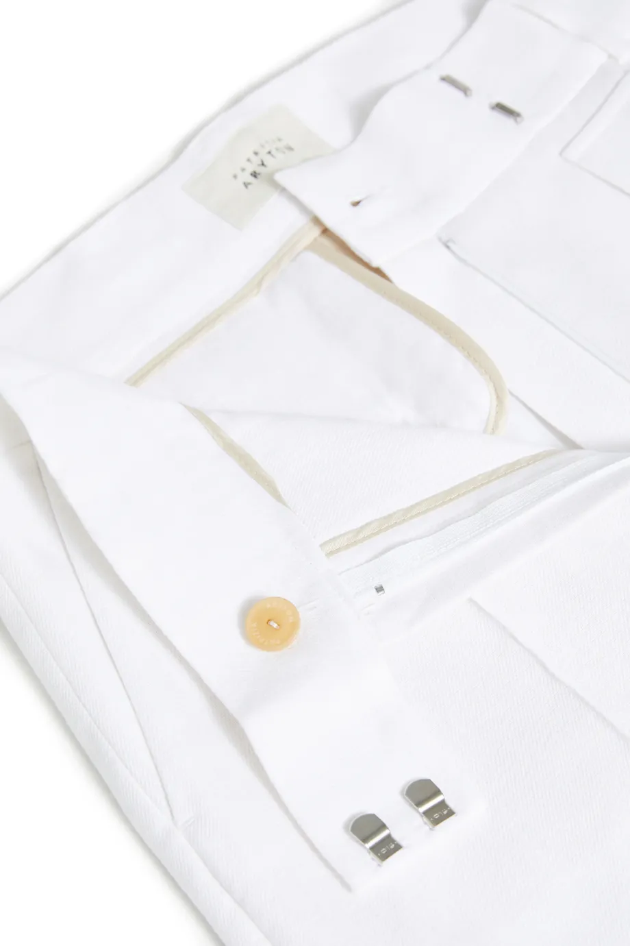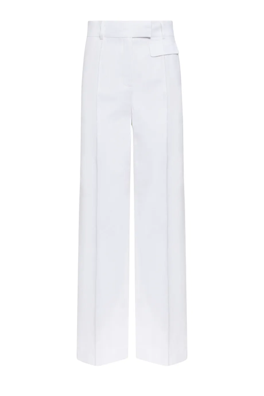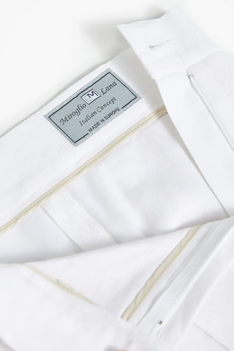 Bílé kalhoty z bavlny a lnu s jednoduchým, širším střihem se záložkami.