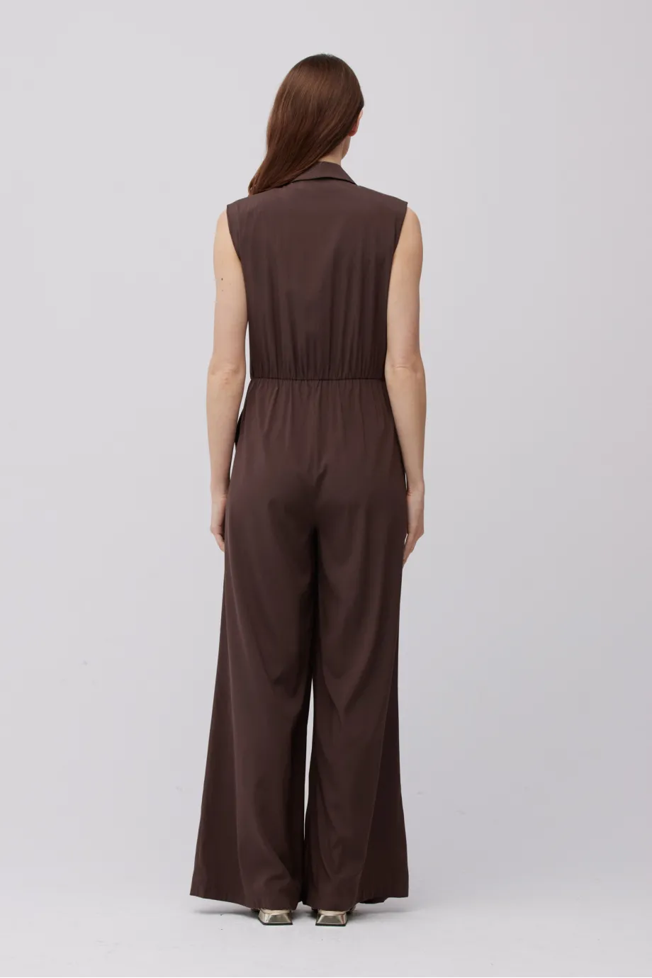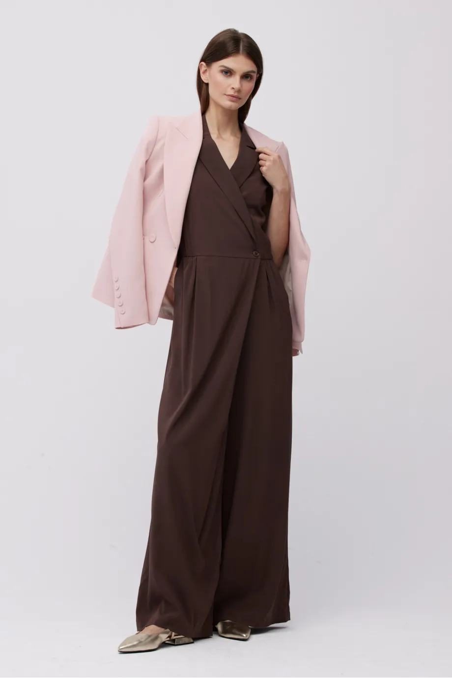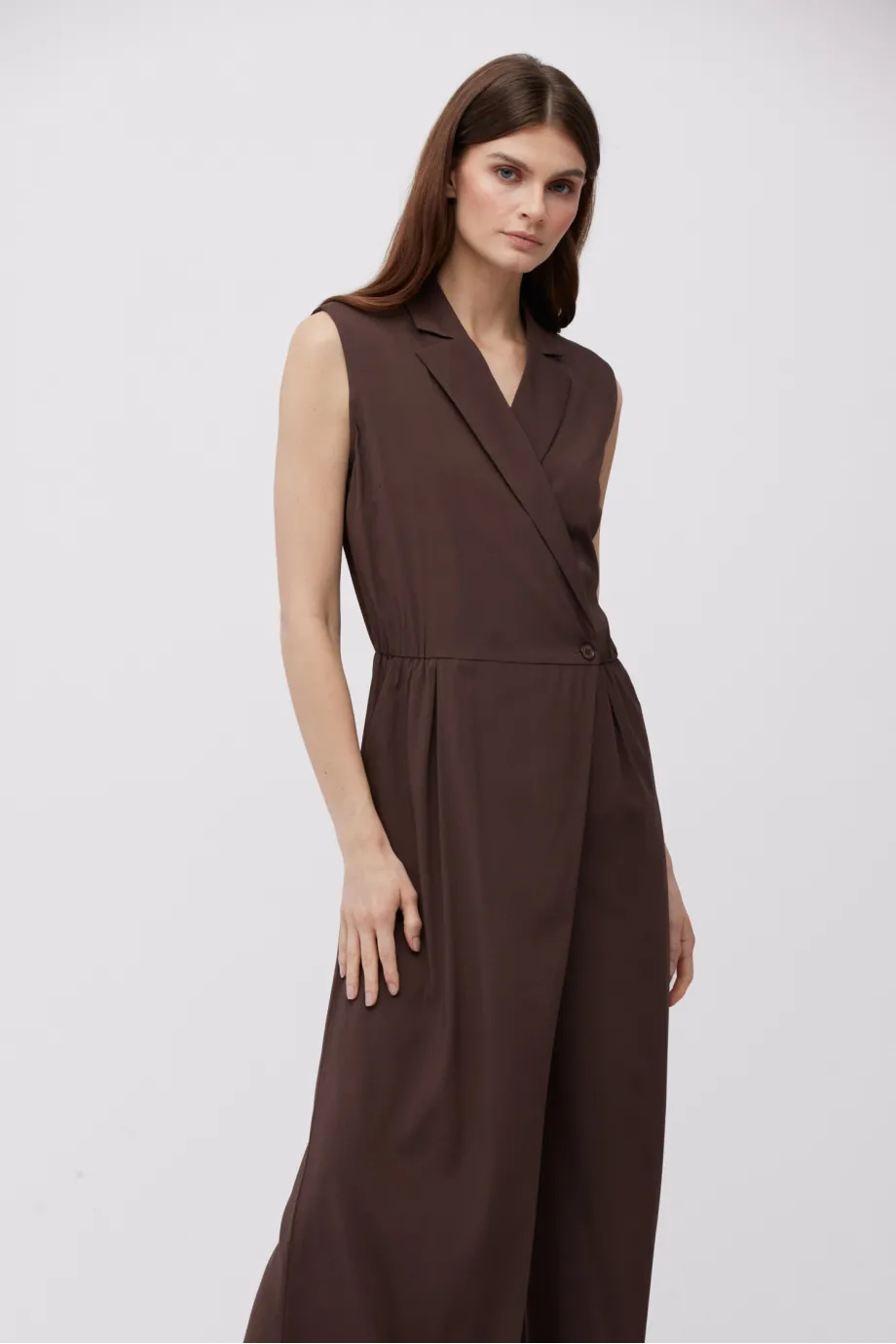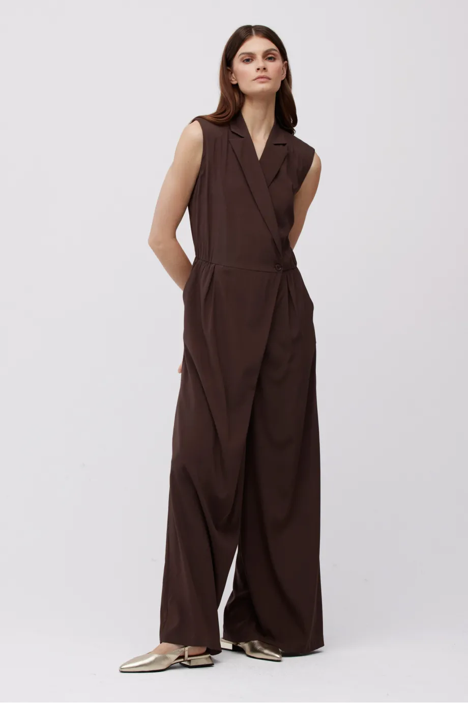 Jedwabný čokoládový overal se širokými nohavicemi