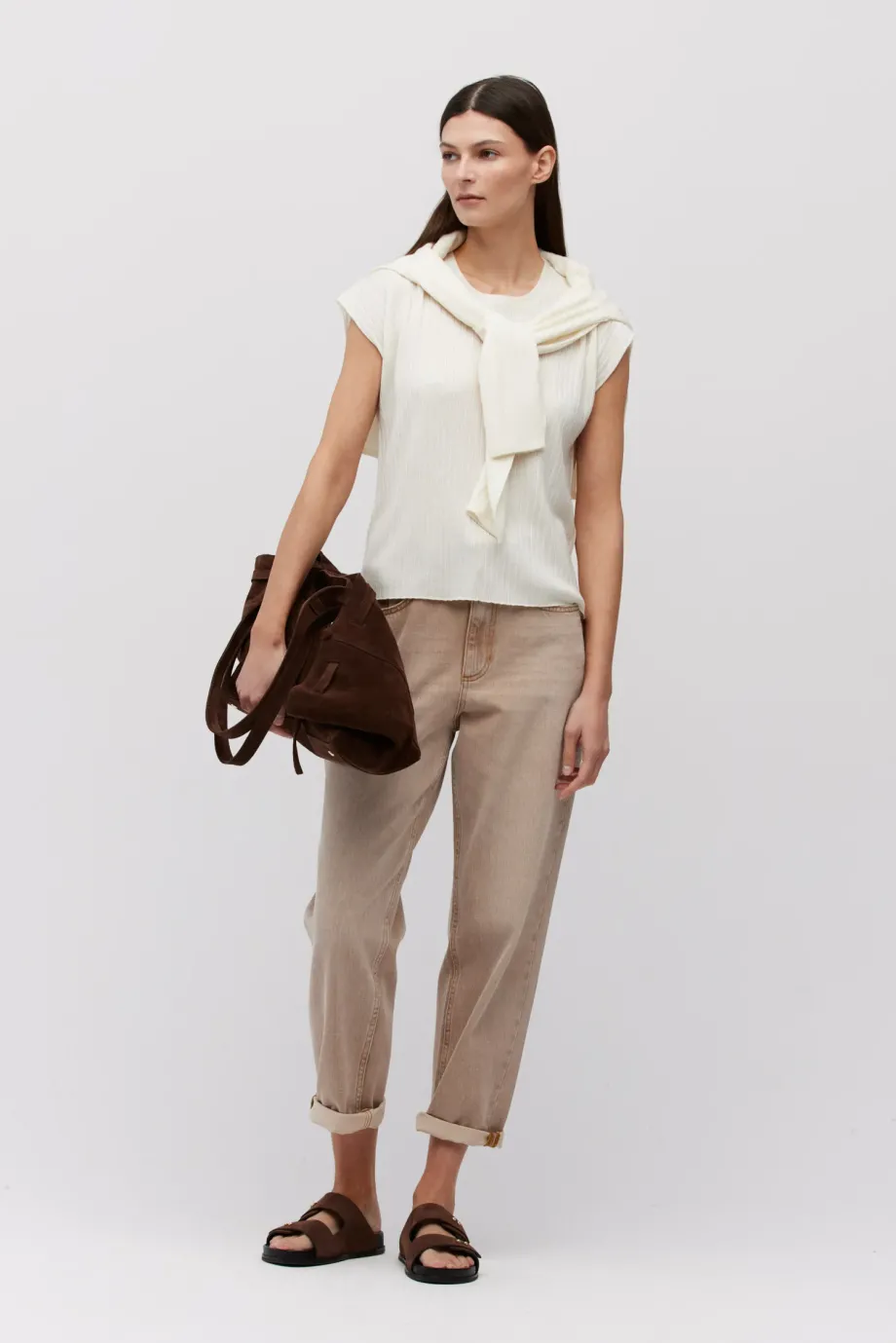 - Jednoduchý střih, krátký, lehce spadlý rukáv