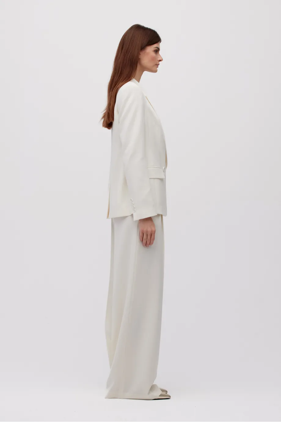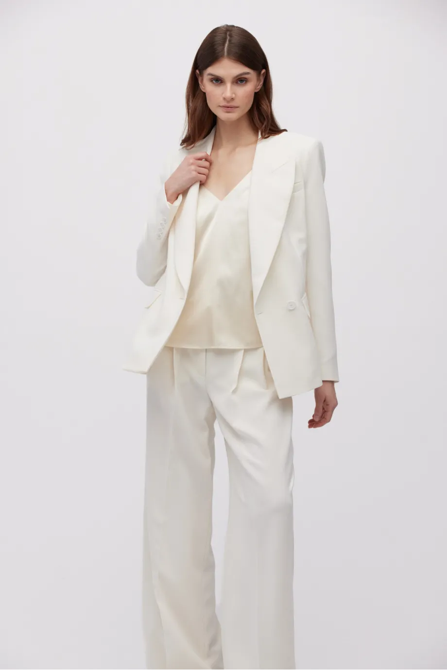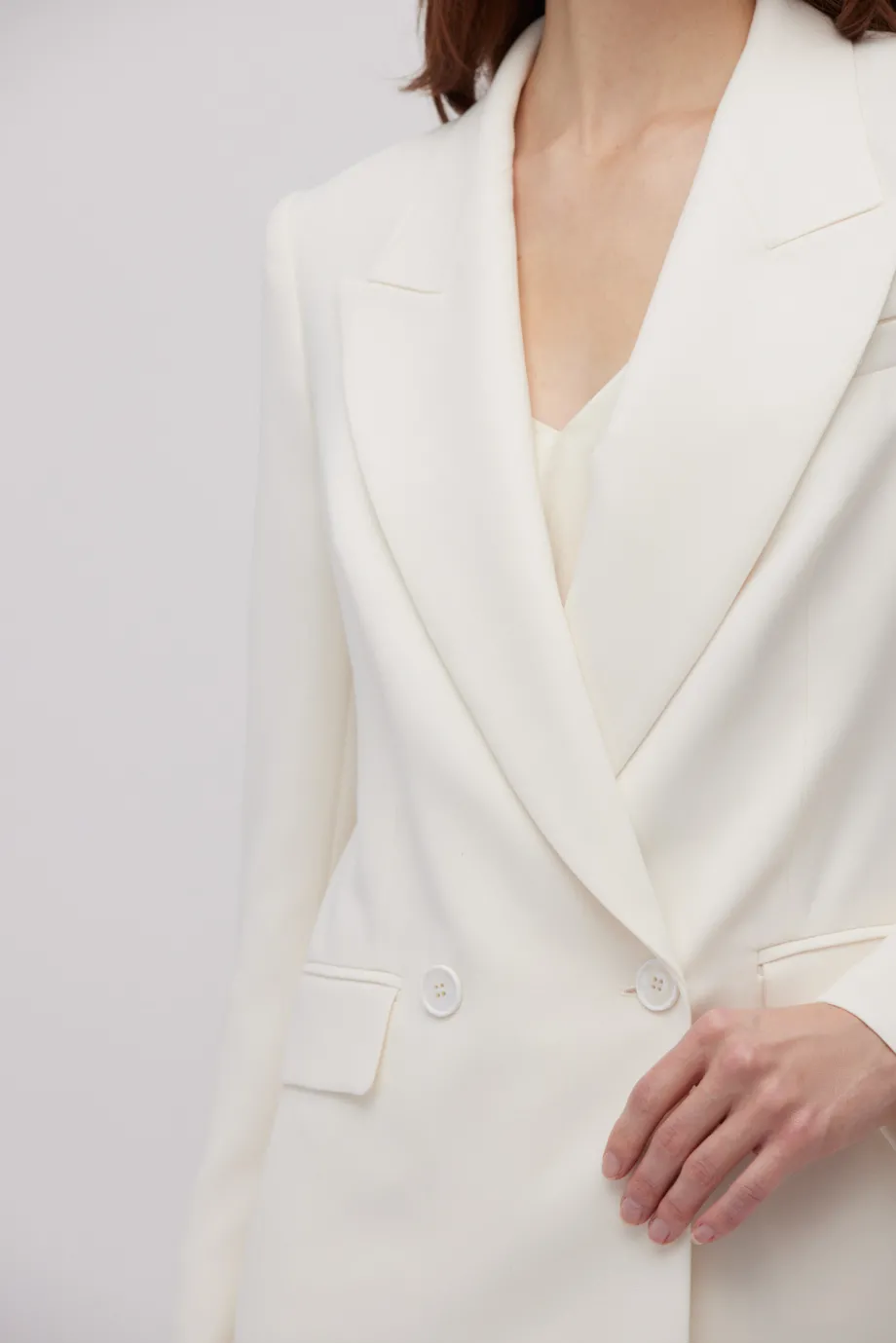 - Celá na podšívce, zapínaná na vnitřní knoflík z přírodního ořechu a vnější knoflíky obsahující perleť.