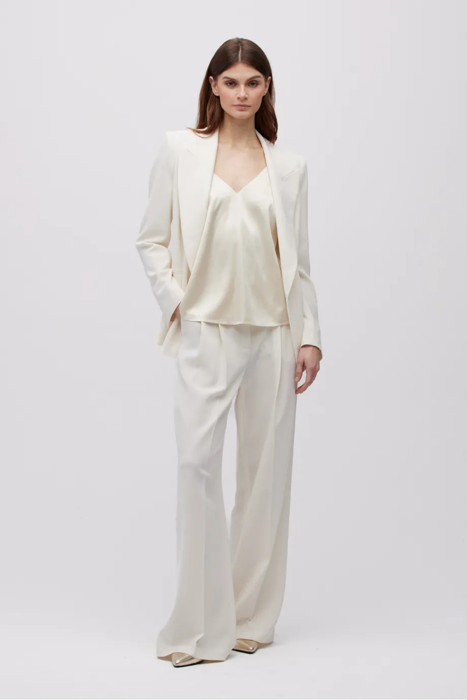 Modelka na fotografii měří 177 cm a nosí velikost 36.