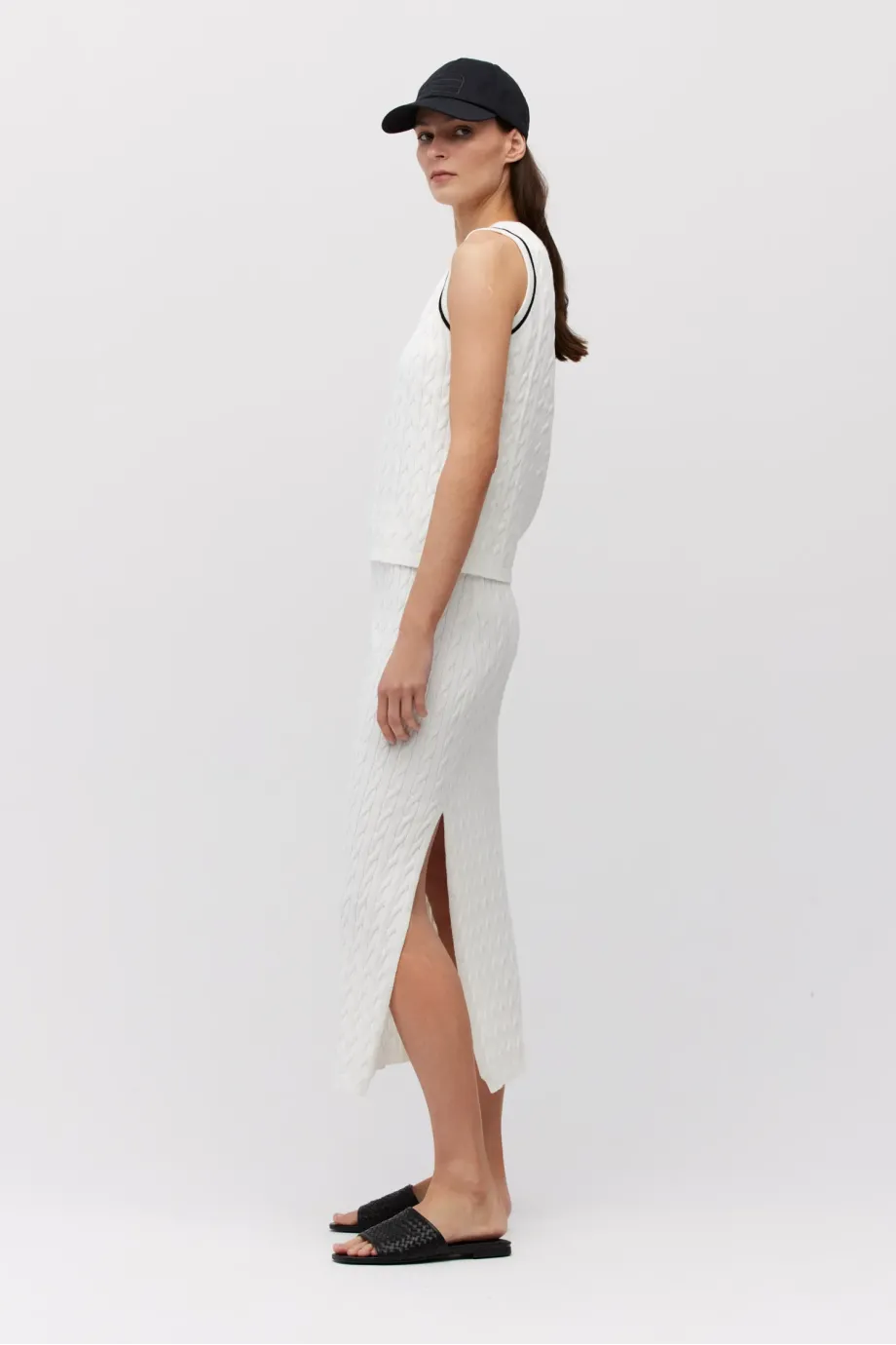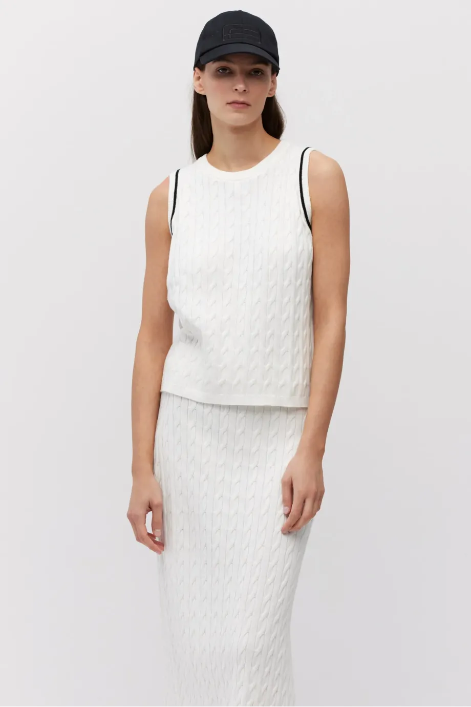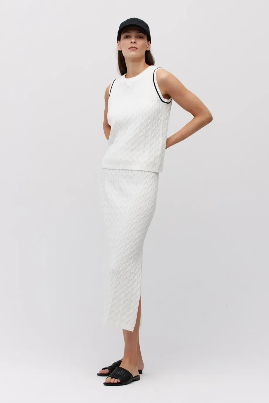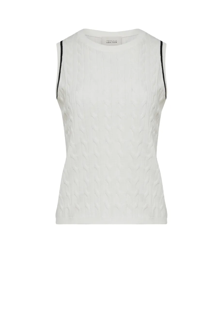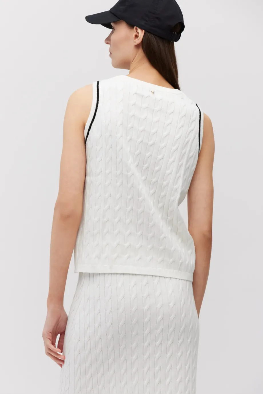 - Bílý top z bavlny s pleteným vzorem cable knit, vyrobený na stroji 12 GG
