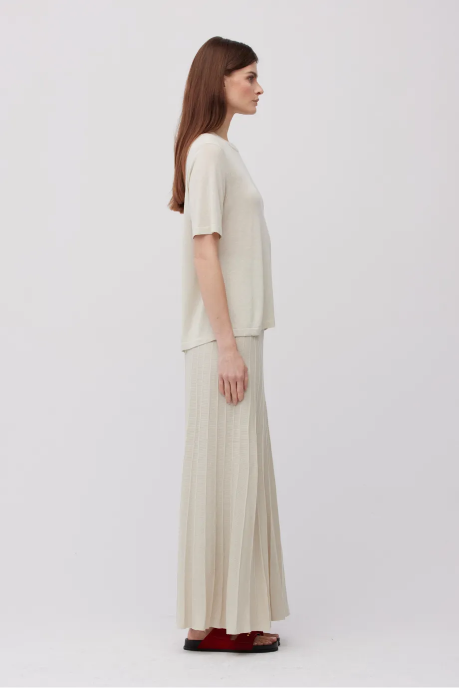 - K soupravě plisovaná sukně ve stejné barvě