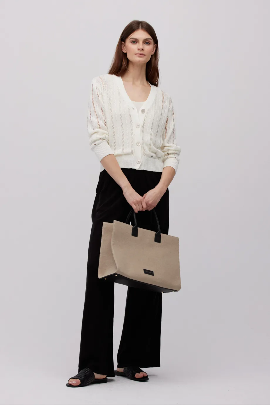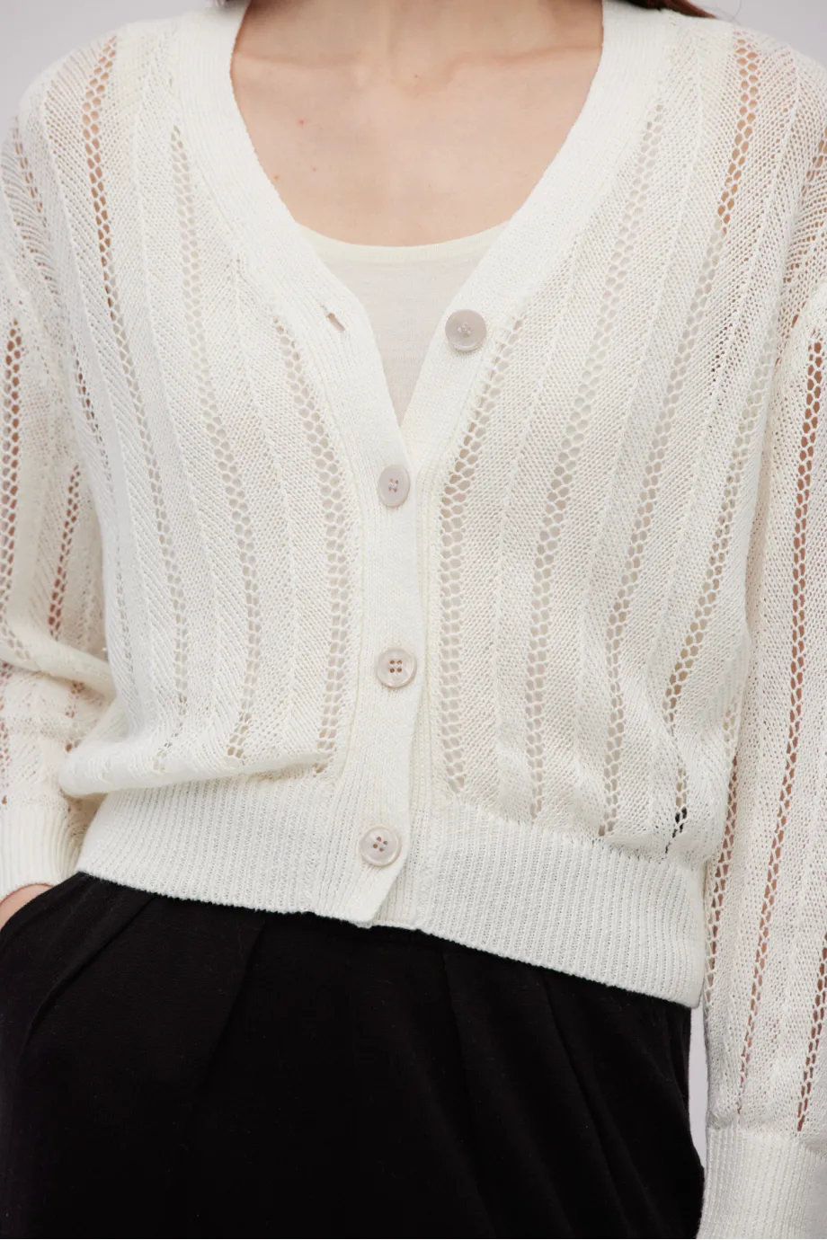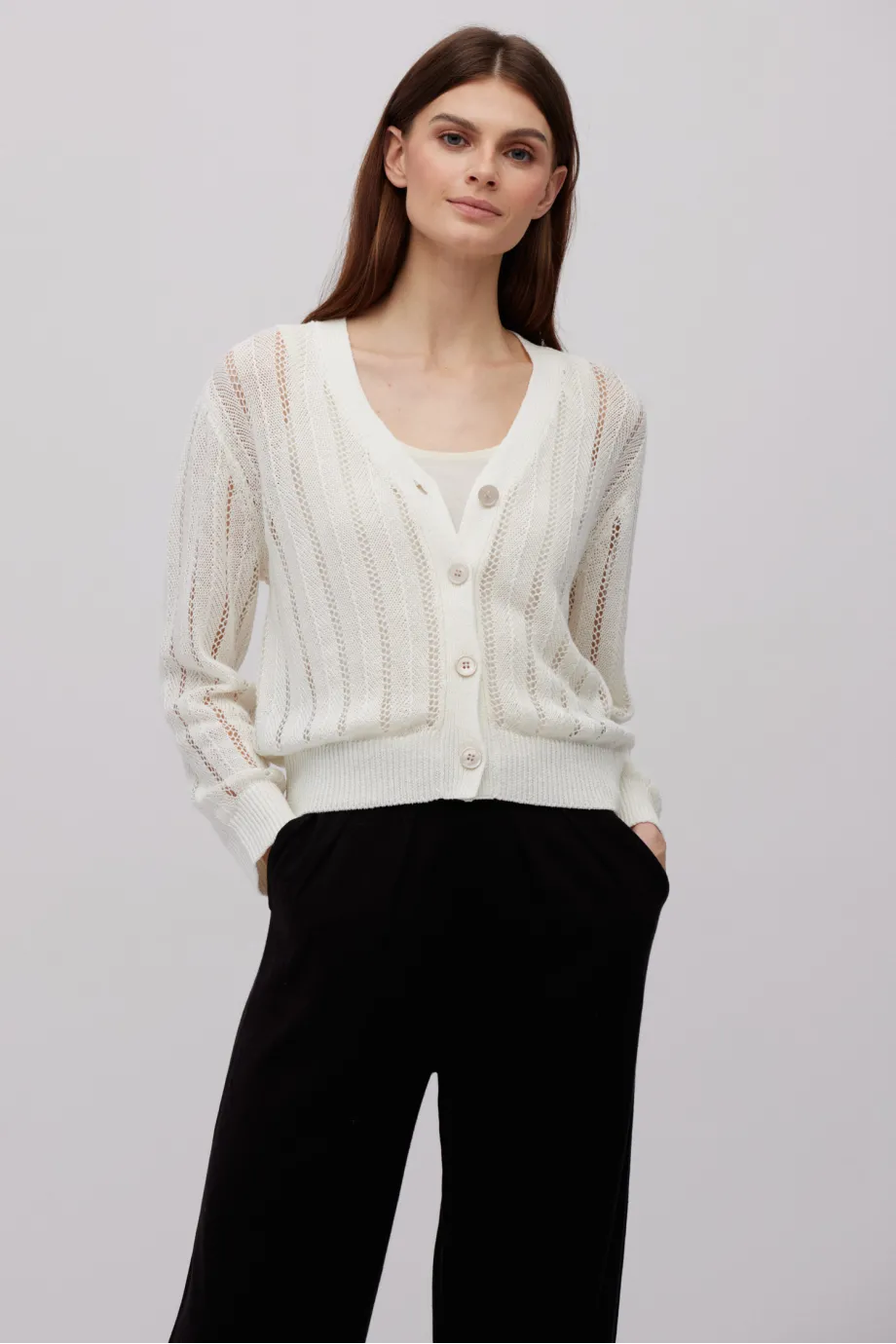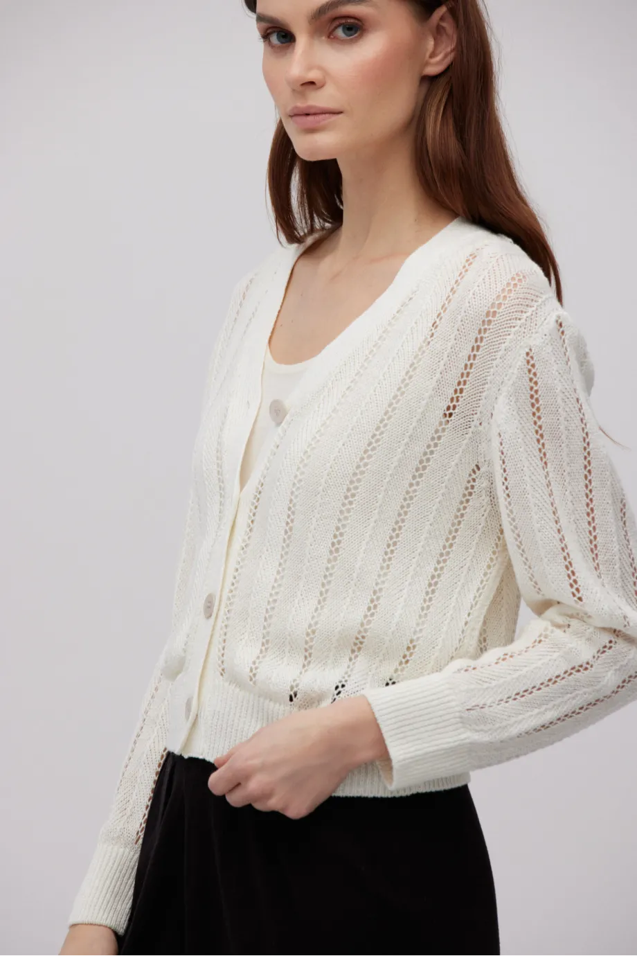 - Krátký kardigan vyrobený z vysoce kvalitního lnu s tkaninou Jacquard.