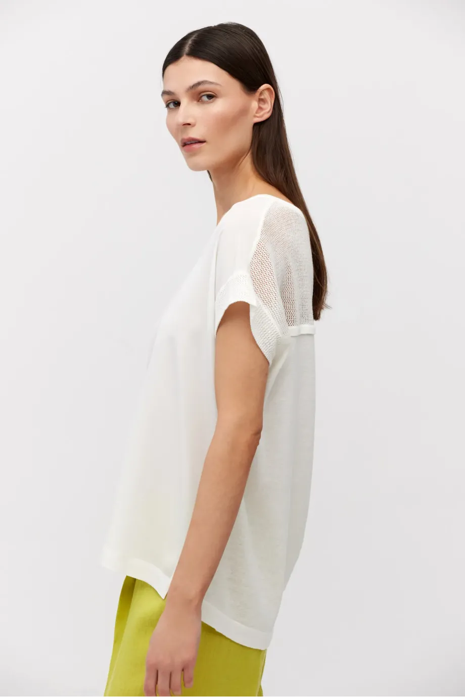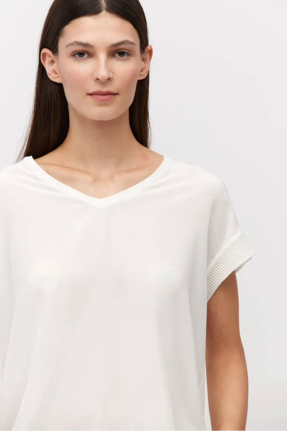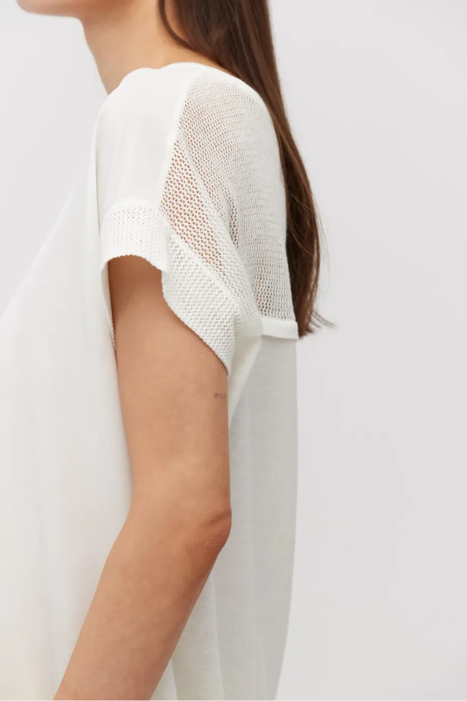Bílý pletený top se satinovým efektem