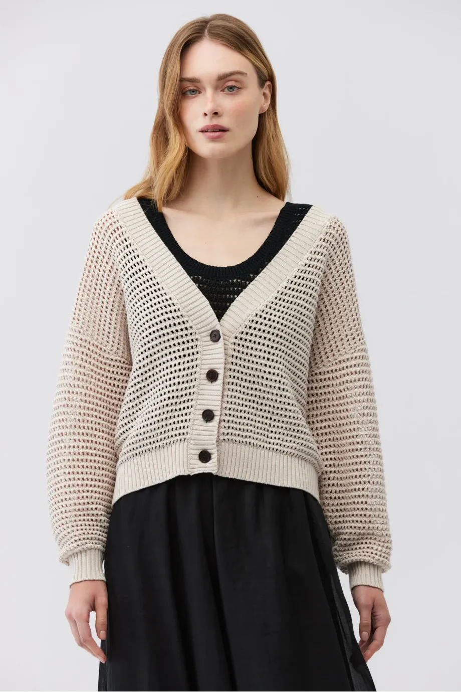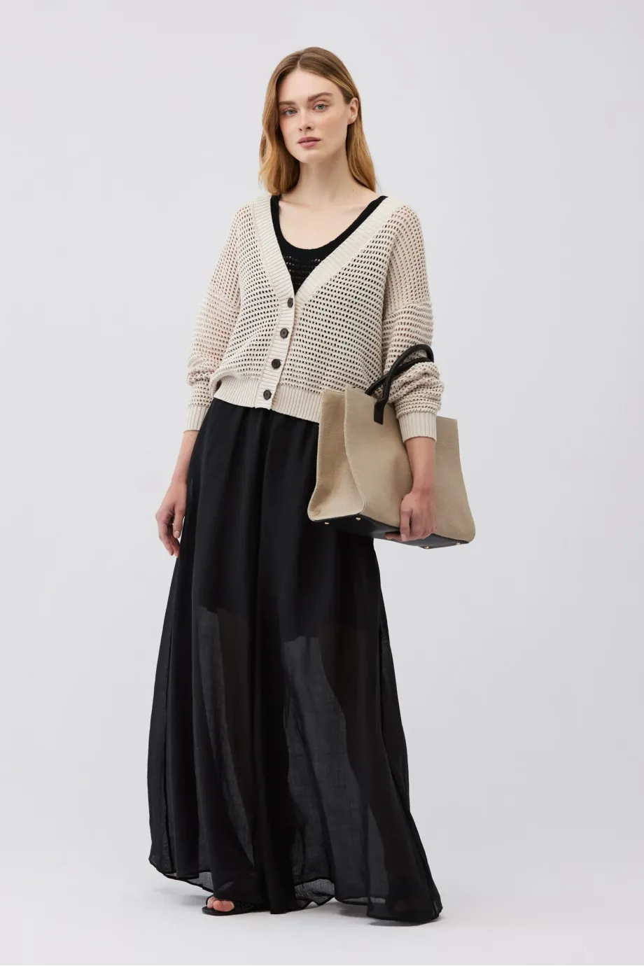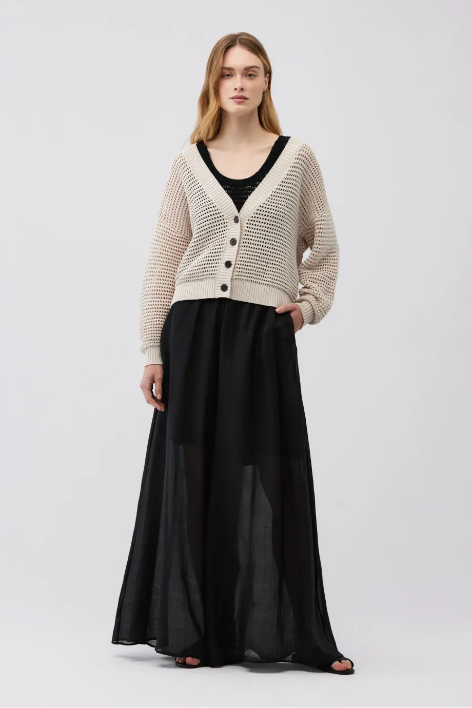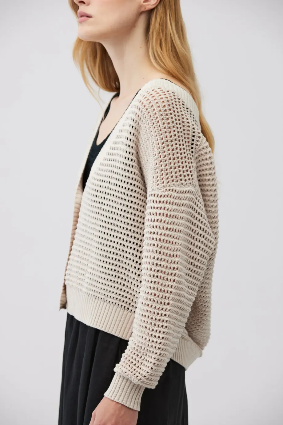 - Béžový kardigan s lnem