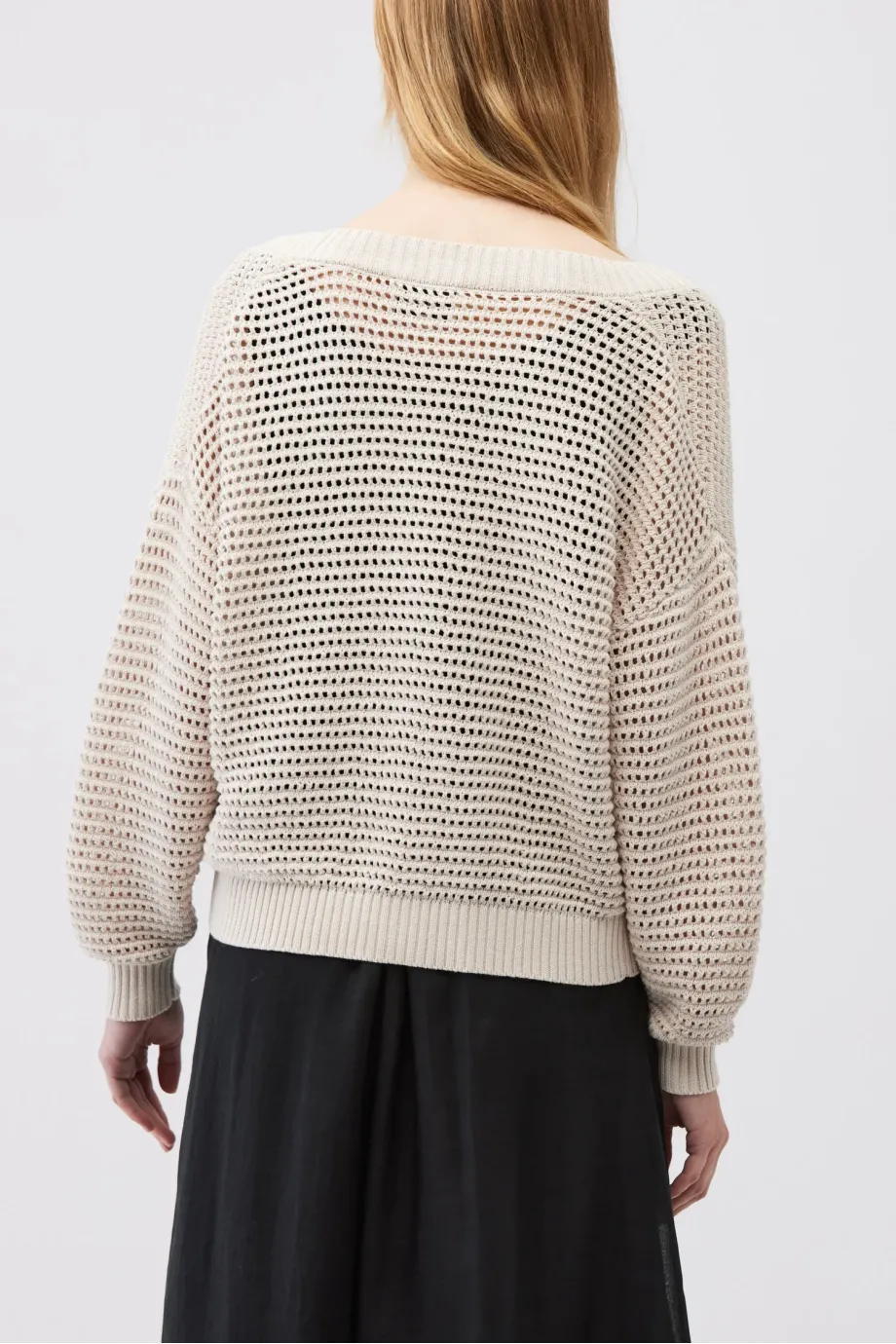 - Luźny fason, długi rękaw, splot pointelle, vyrobený na stroji 5 GG