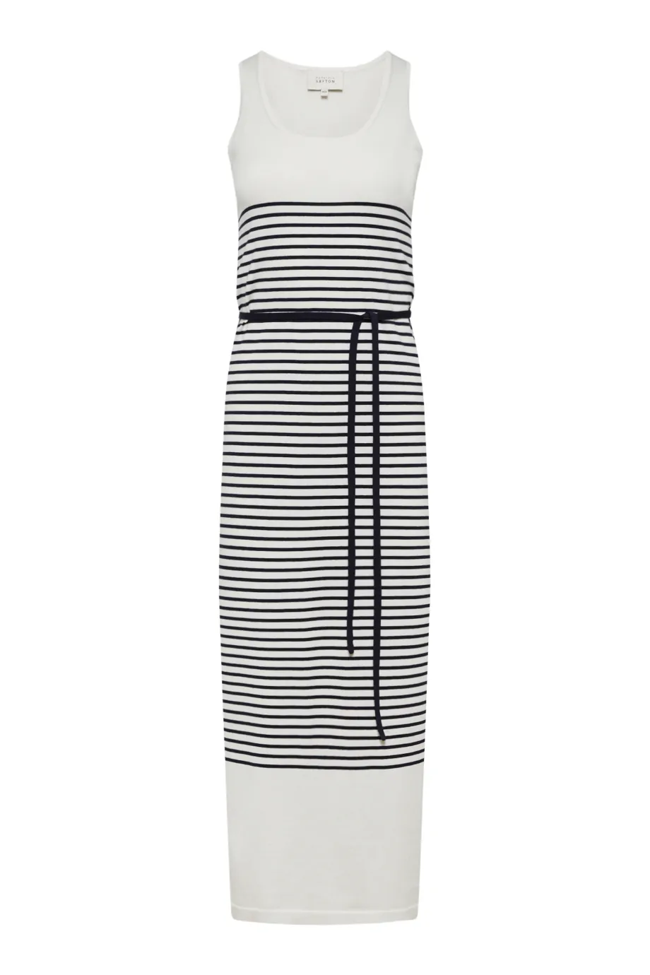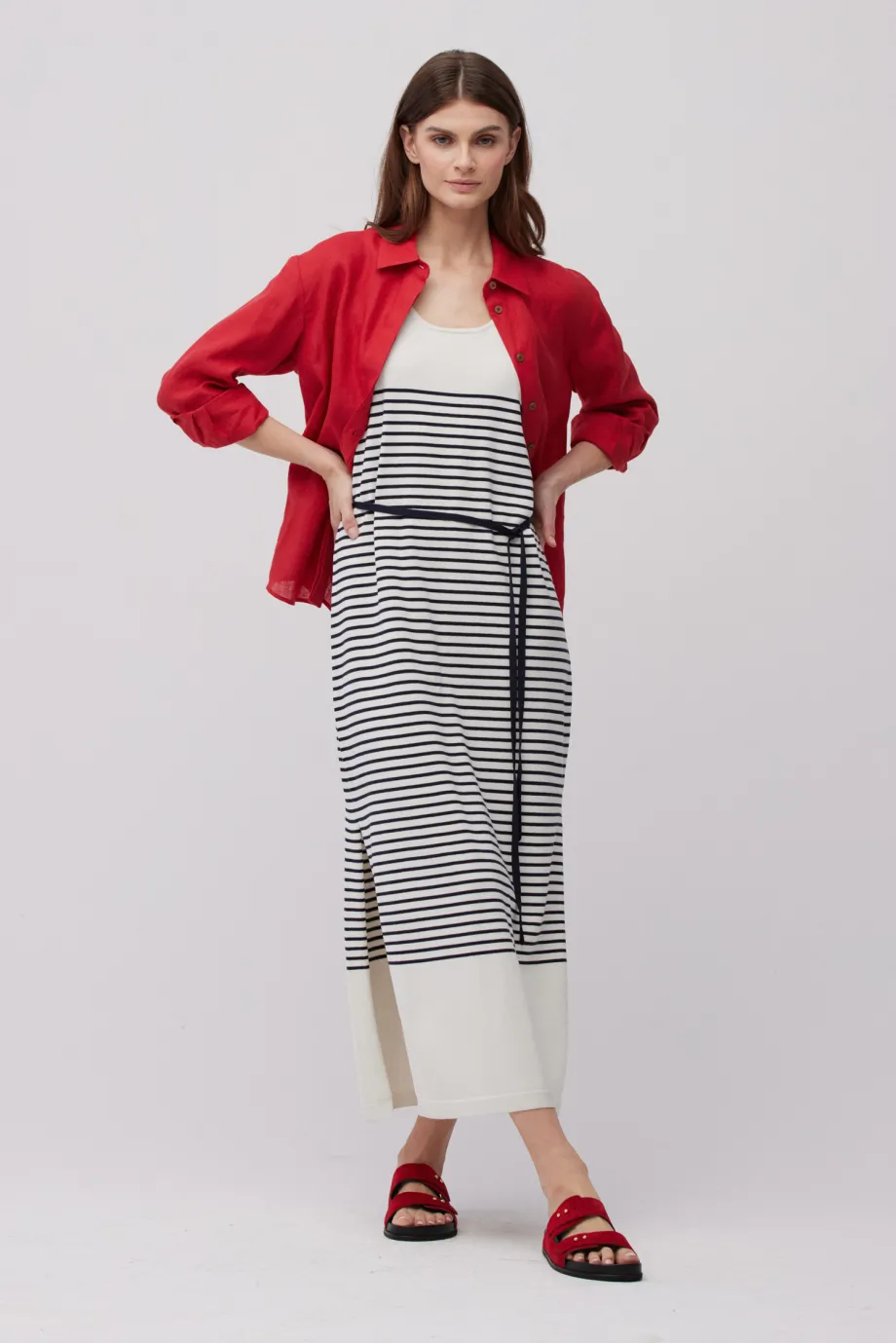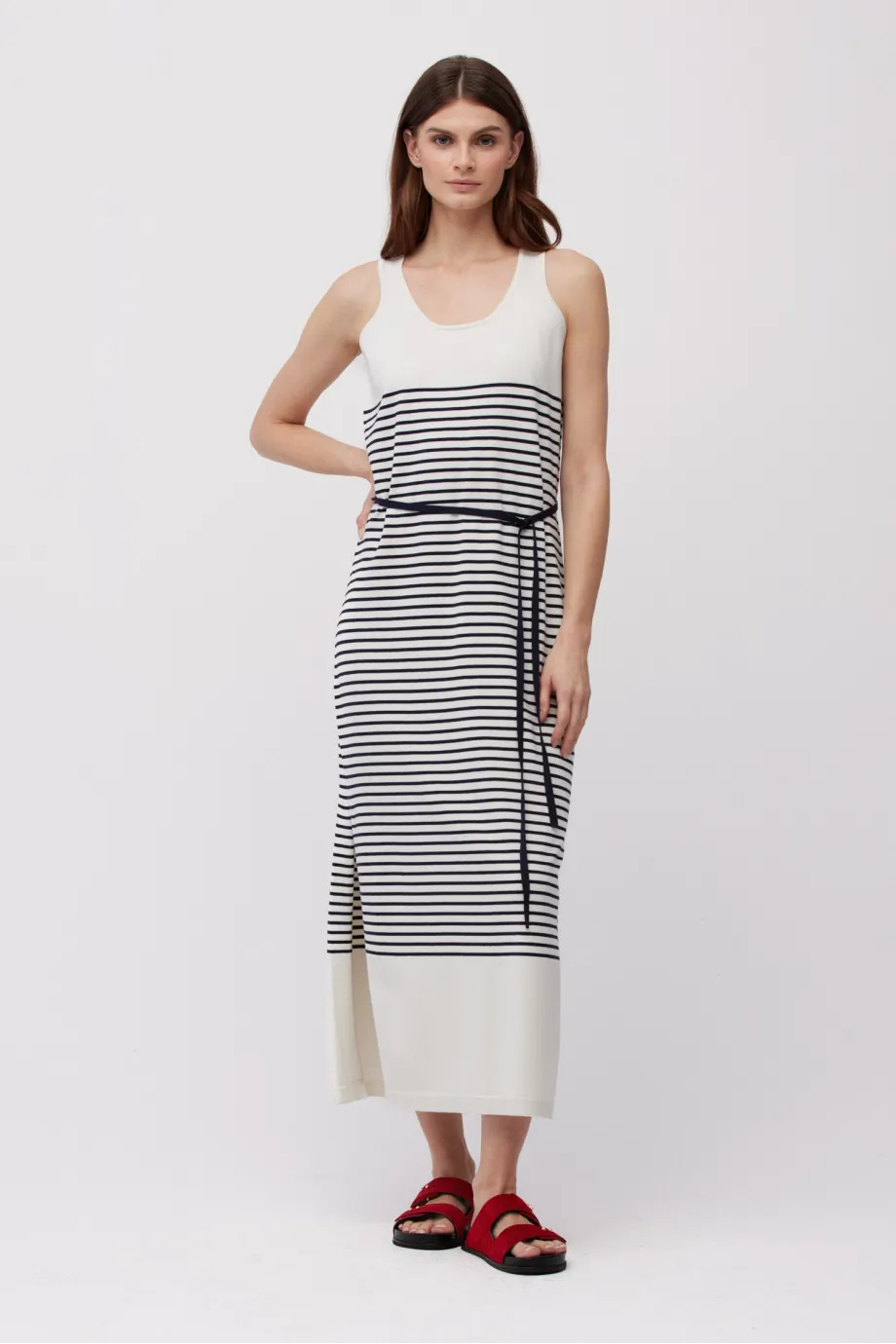 - Přiléhavý střih, kulatý výstřih, pásek v pase a rozparky po stranách.