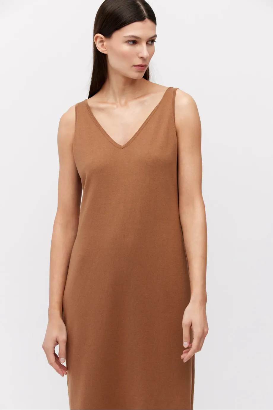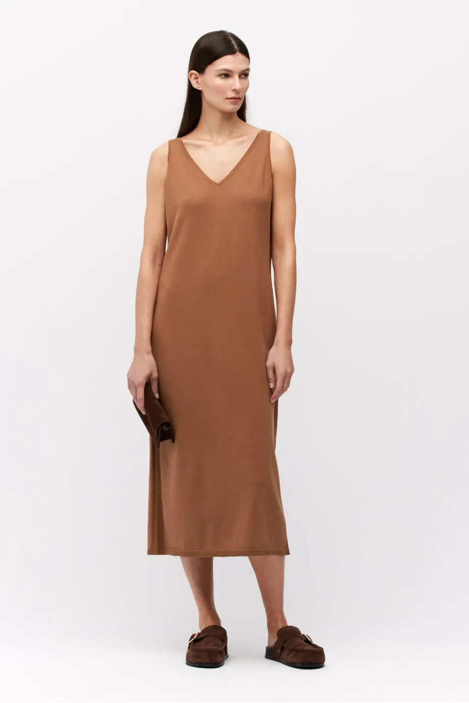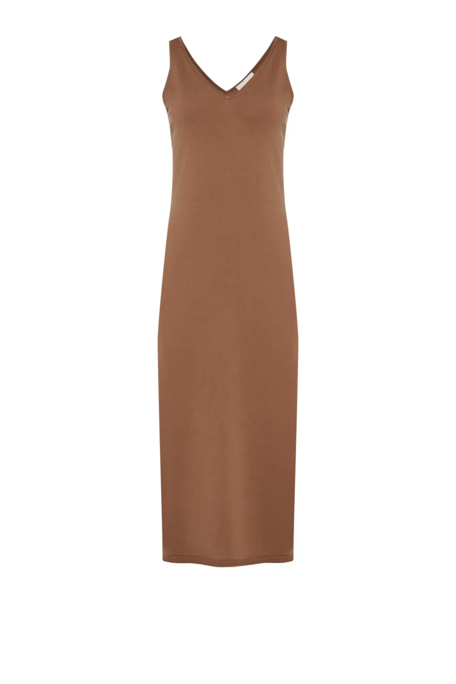 - Midi šaty z bavlny a hedvábí v hnědé barvě