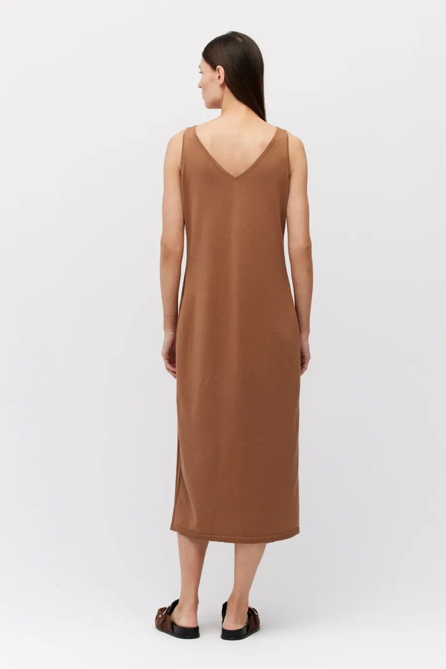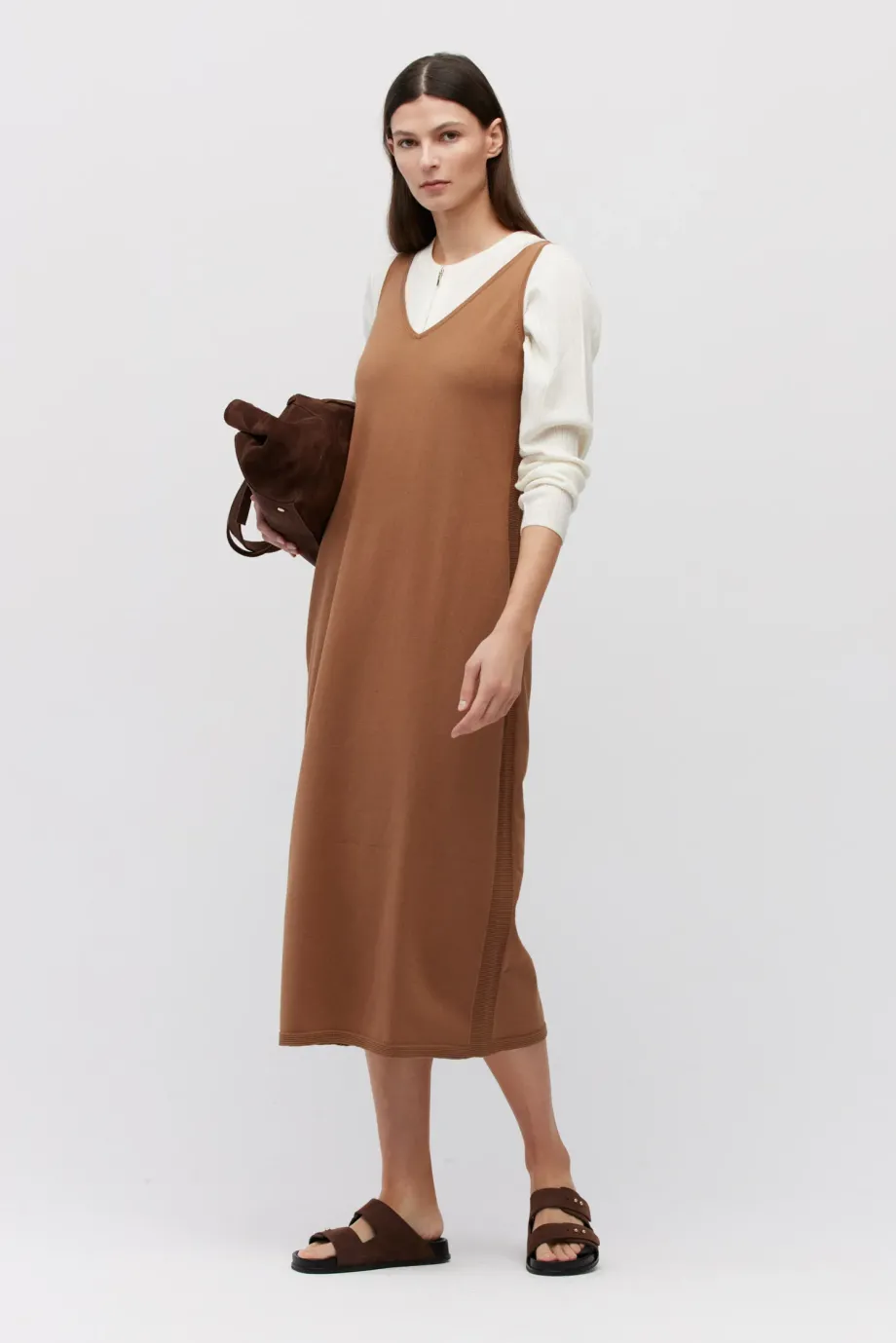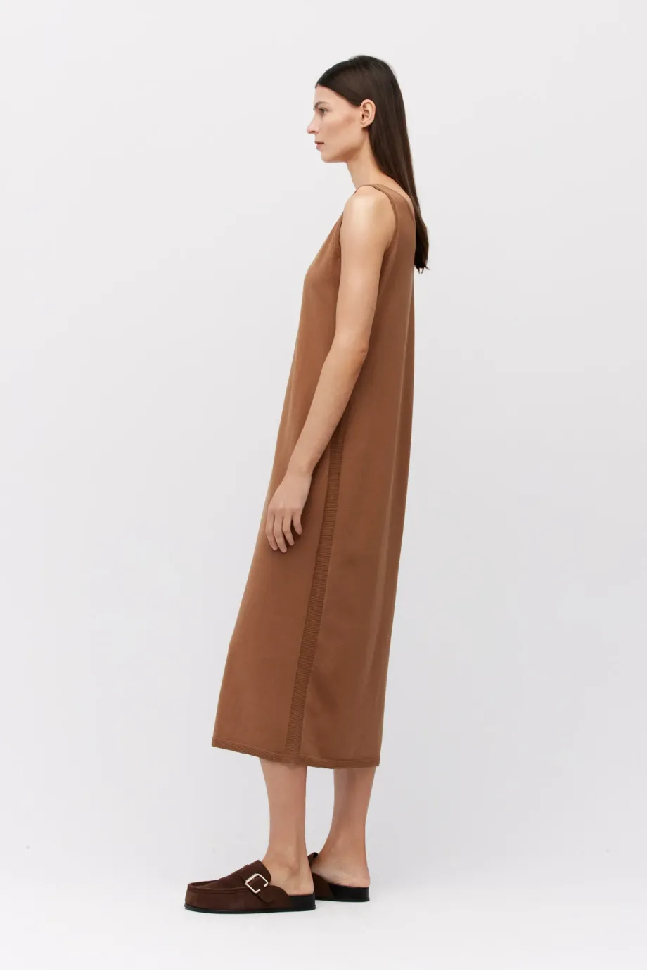 - Midi šaty z bavlny a hedvábí v hnědé barvě