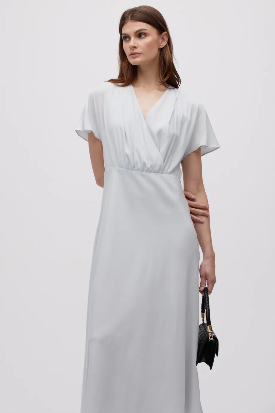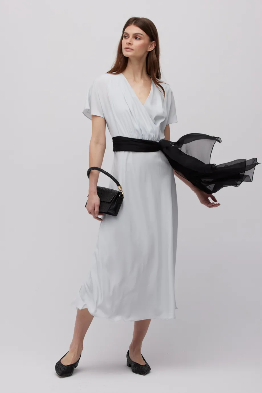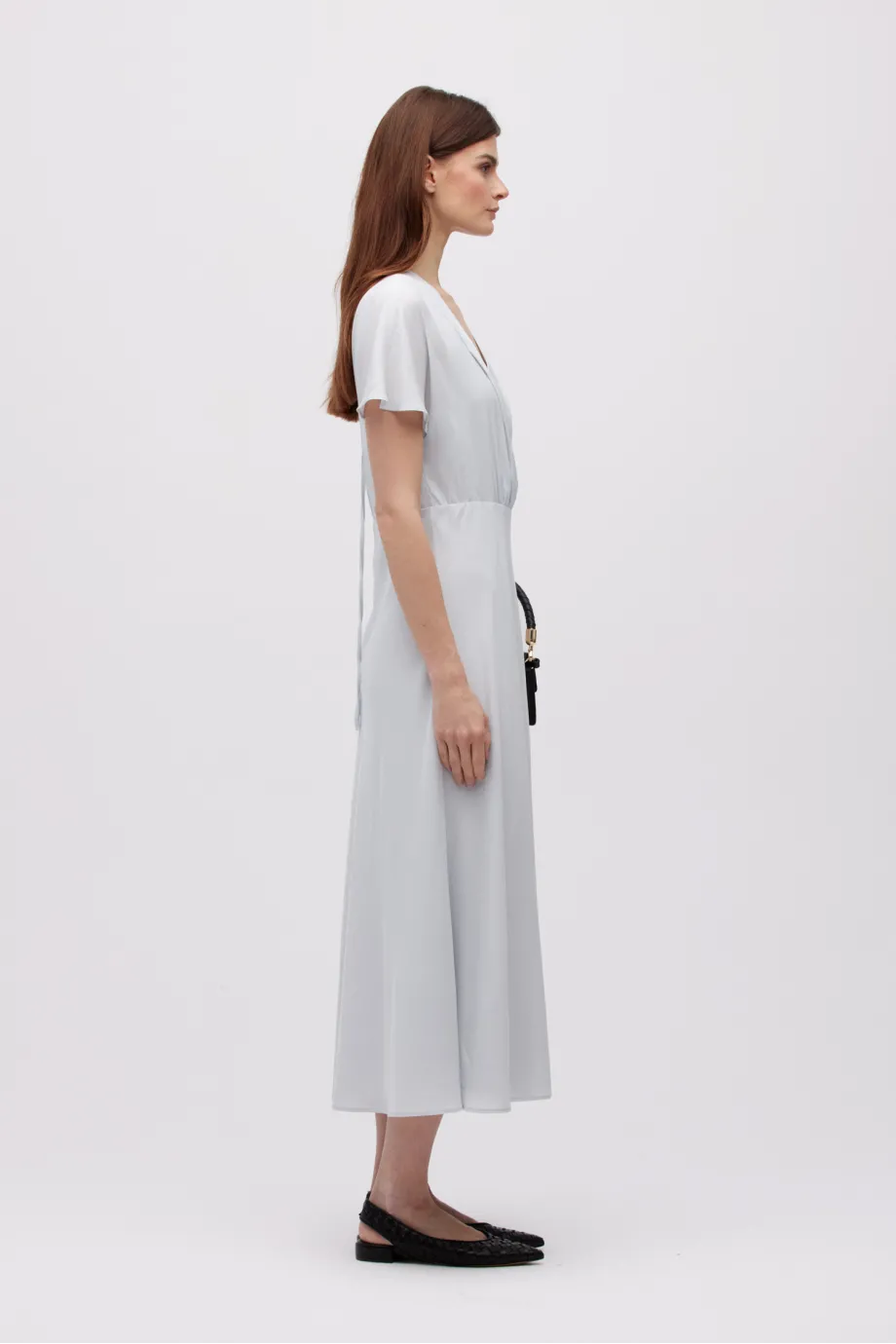 - Šedá midi šaty z hedvábí