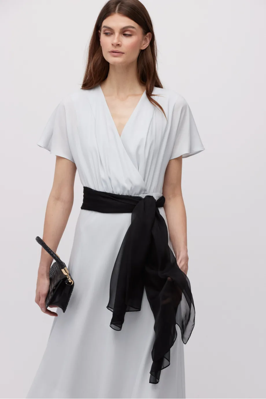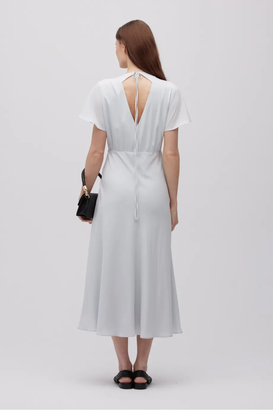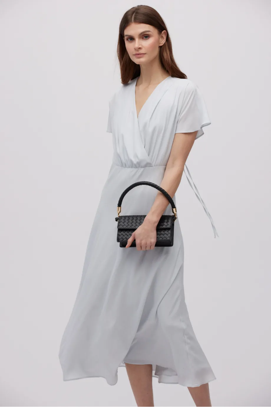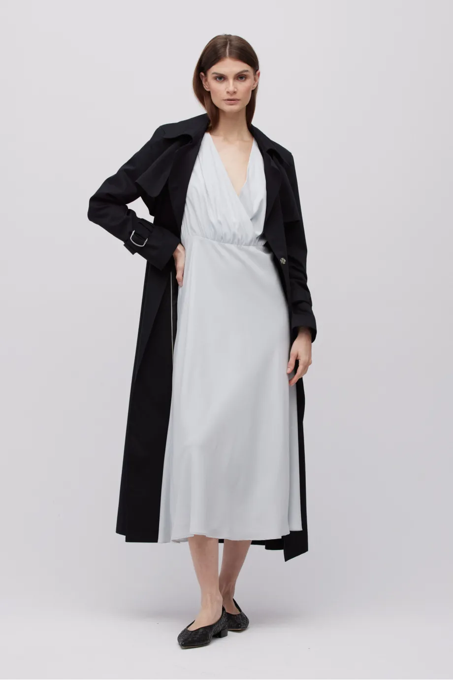 - Šedá midi šaty z hedvábí