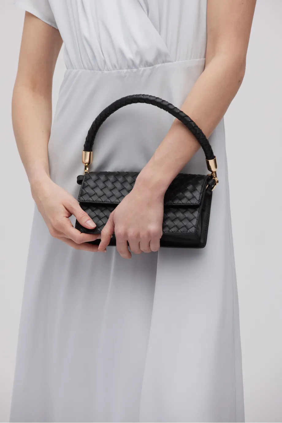 Modelka na fotografii má 177 cm výšku, nosí velikost 36.