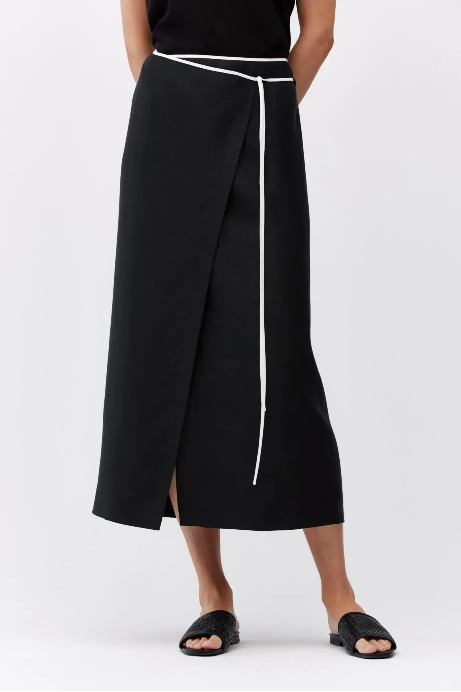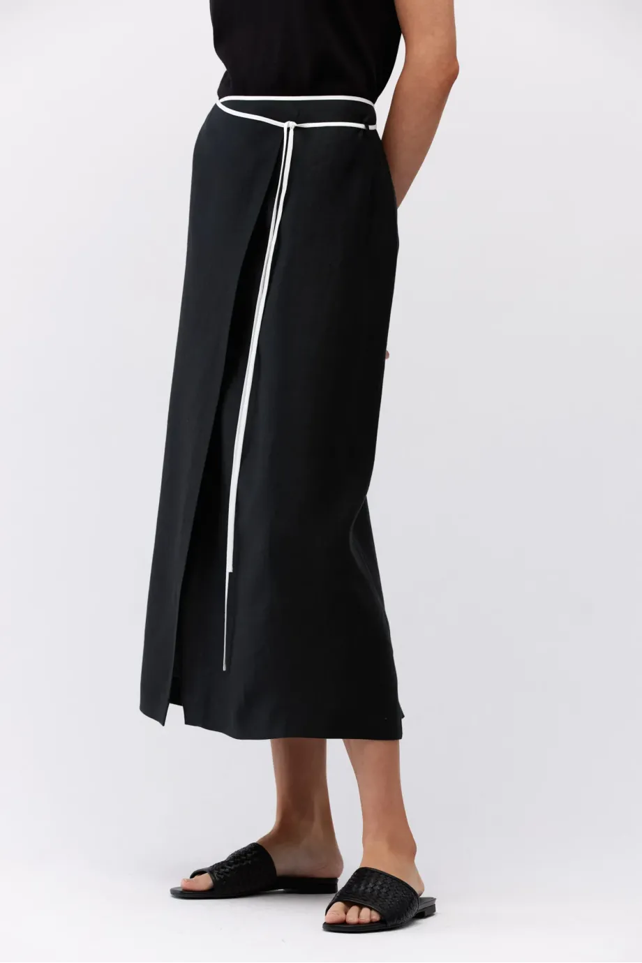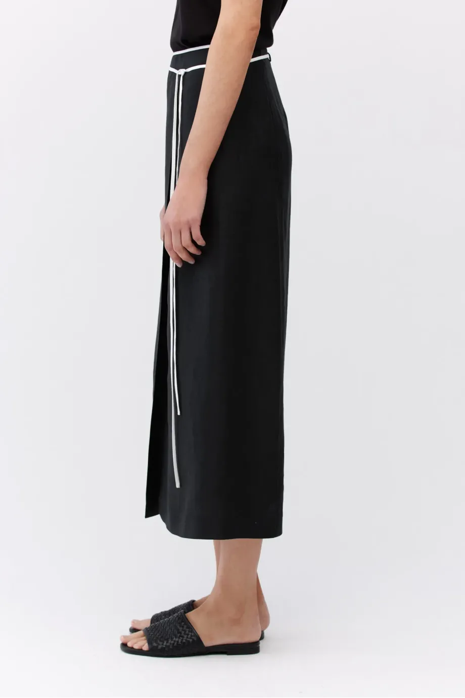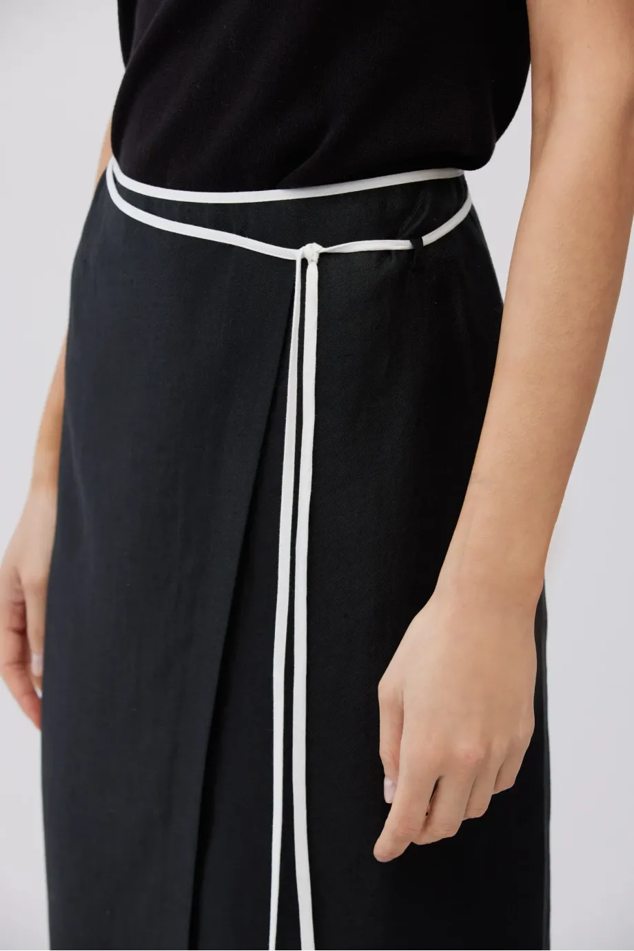 Černá lněná sukně s vázáním