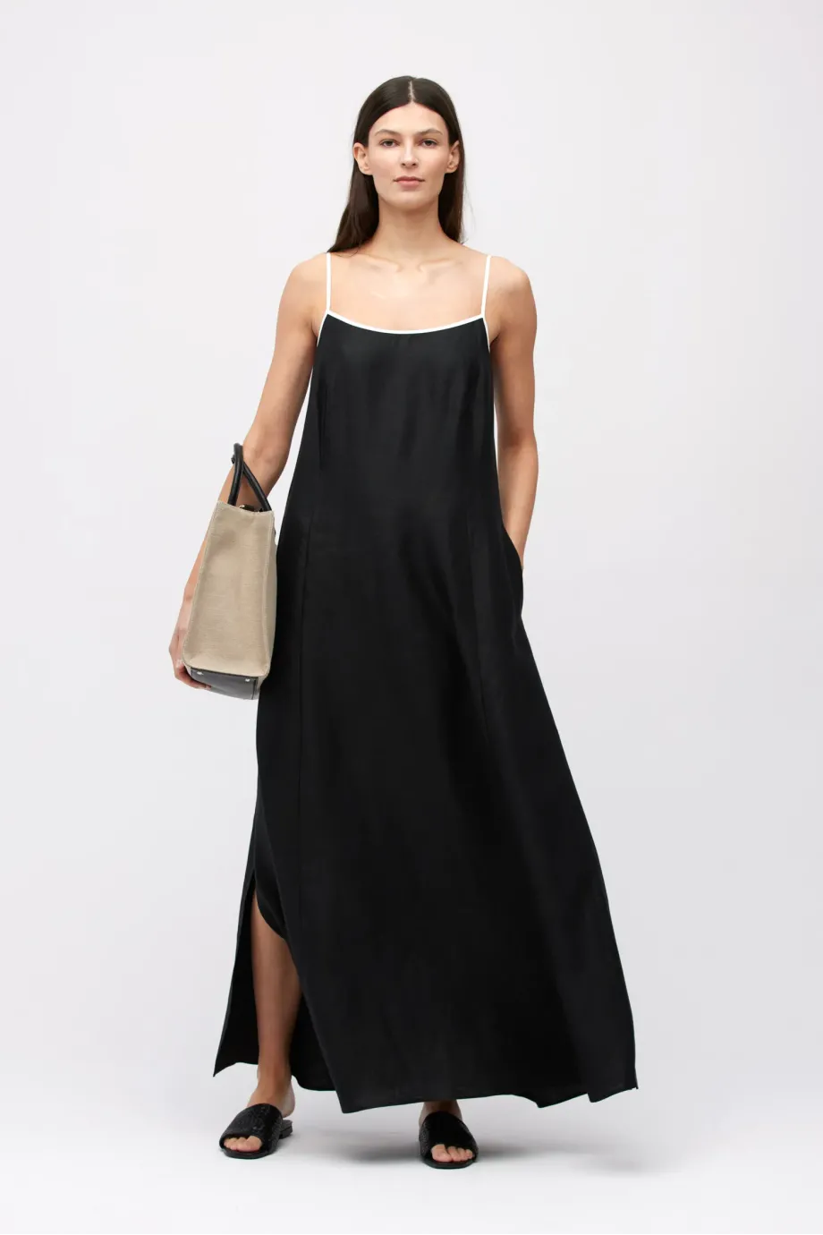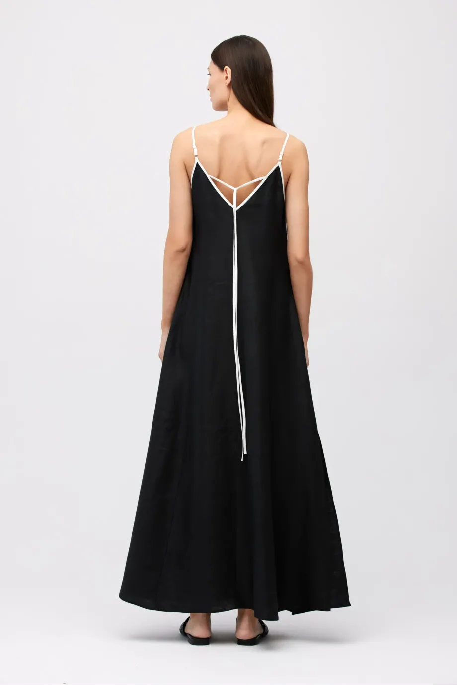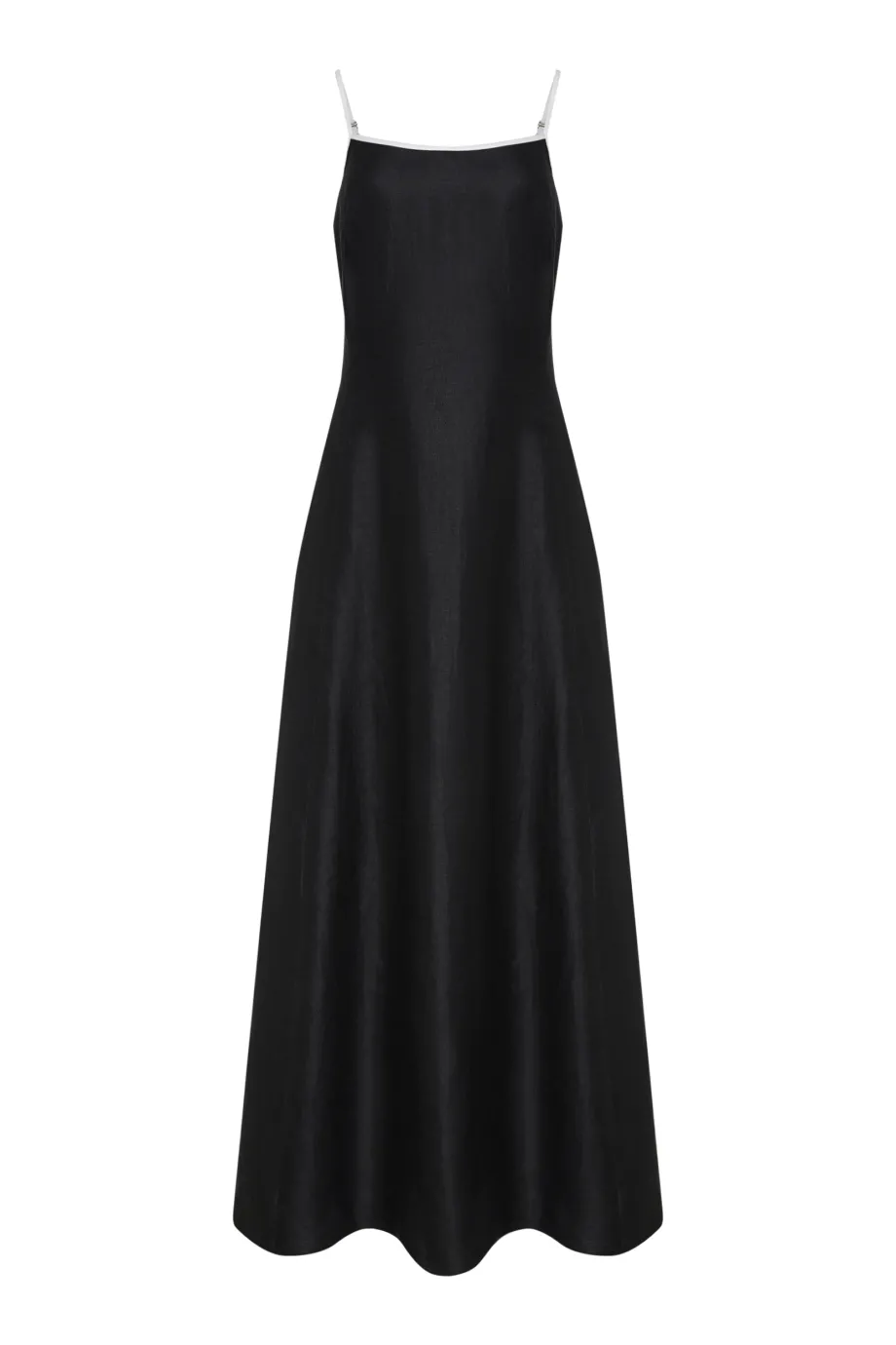 - Černé maxi šaty z lnu na nastavitelných ramínkách