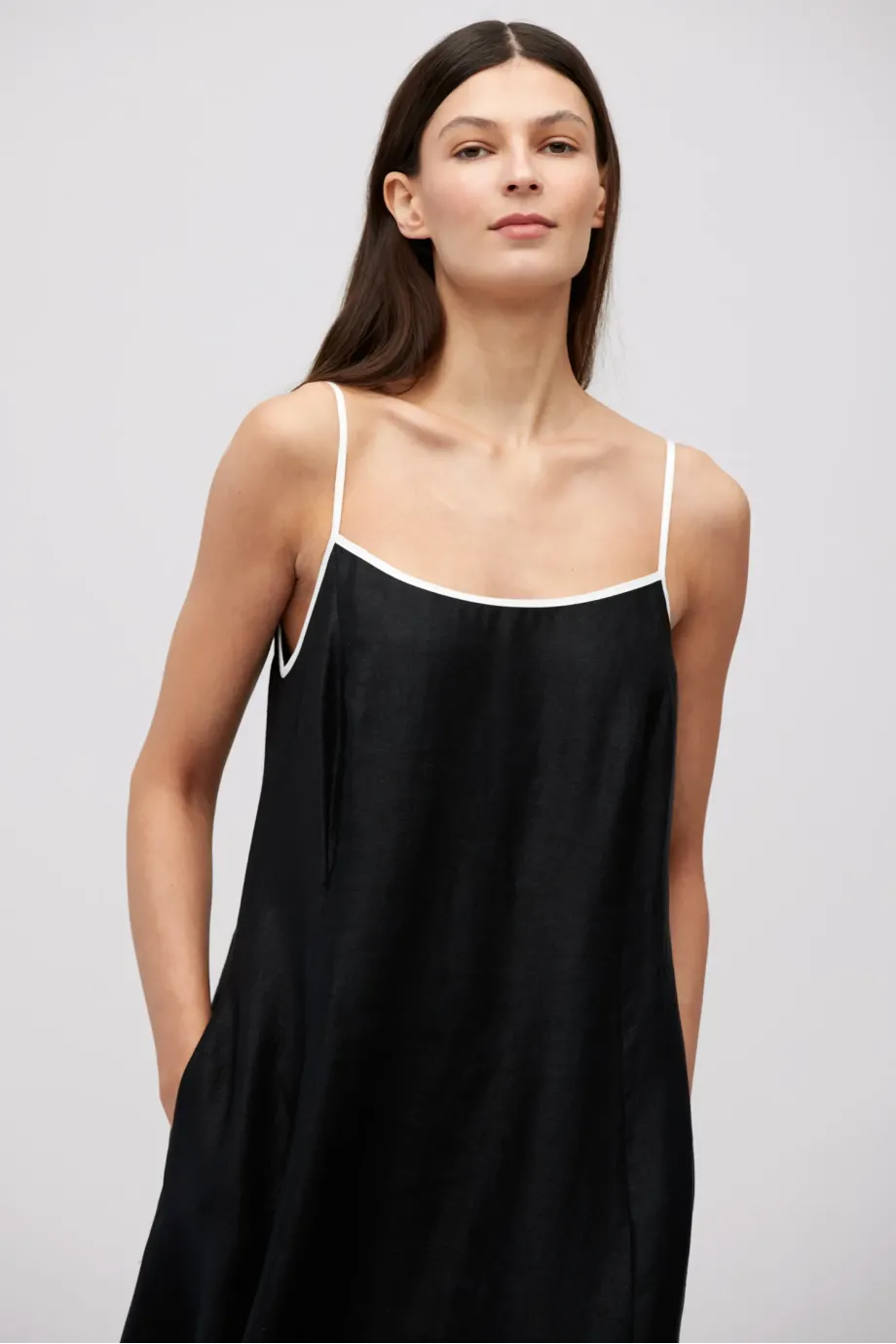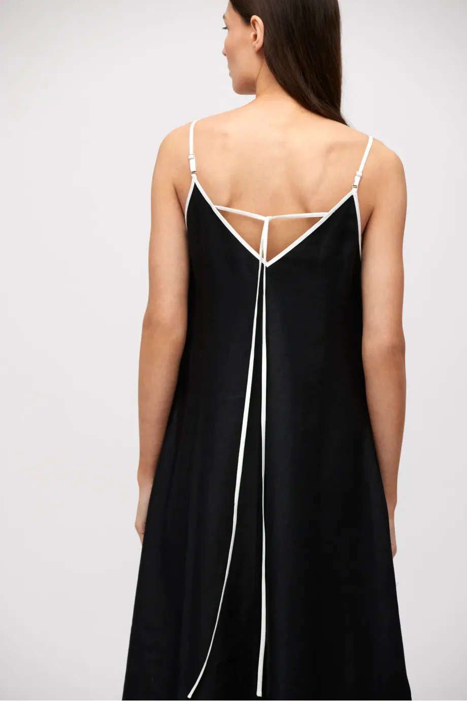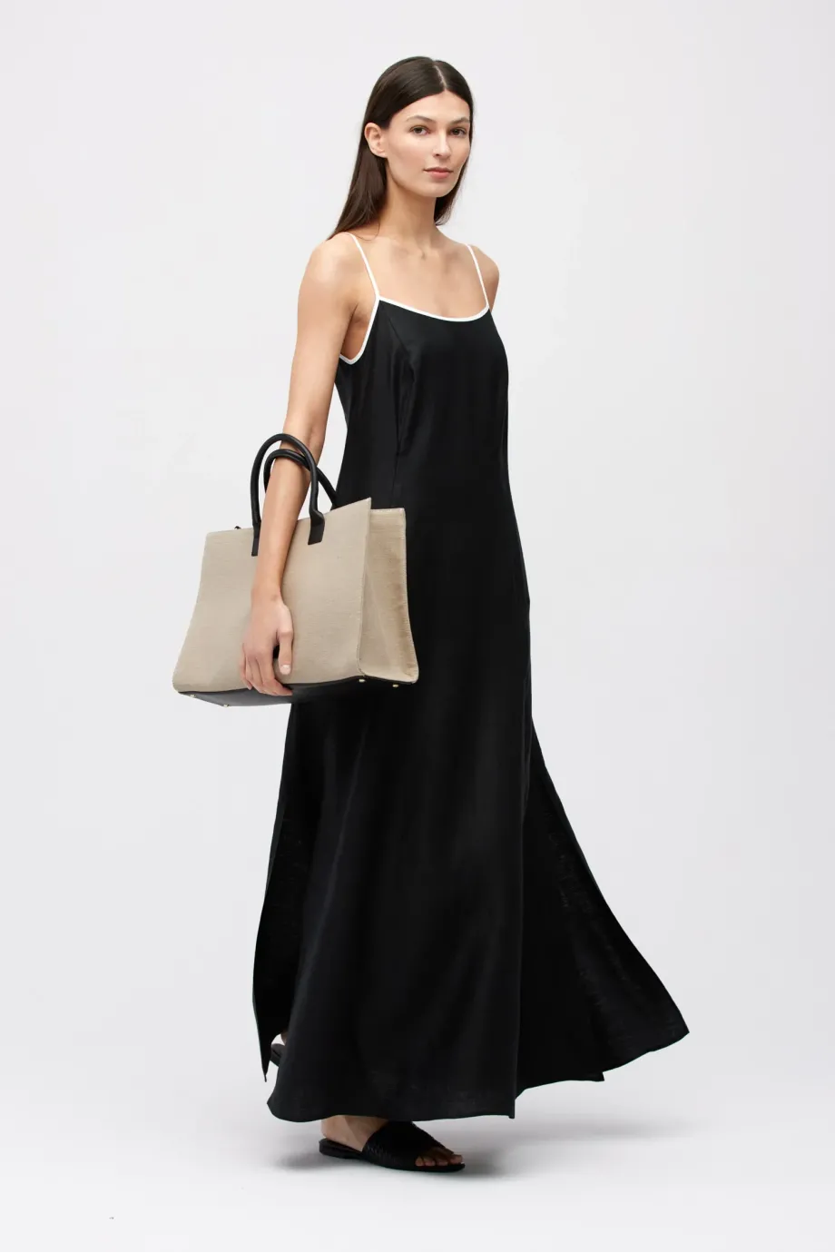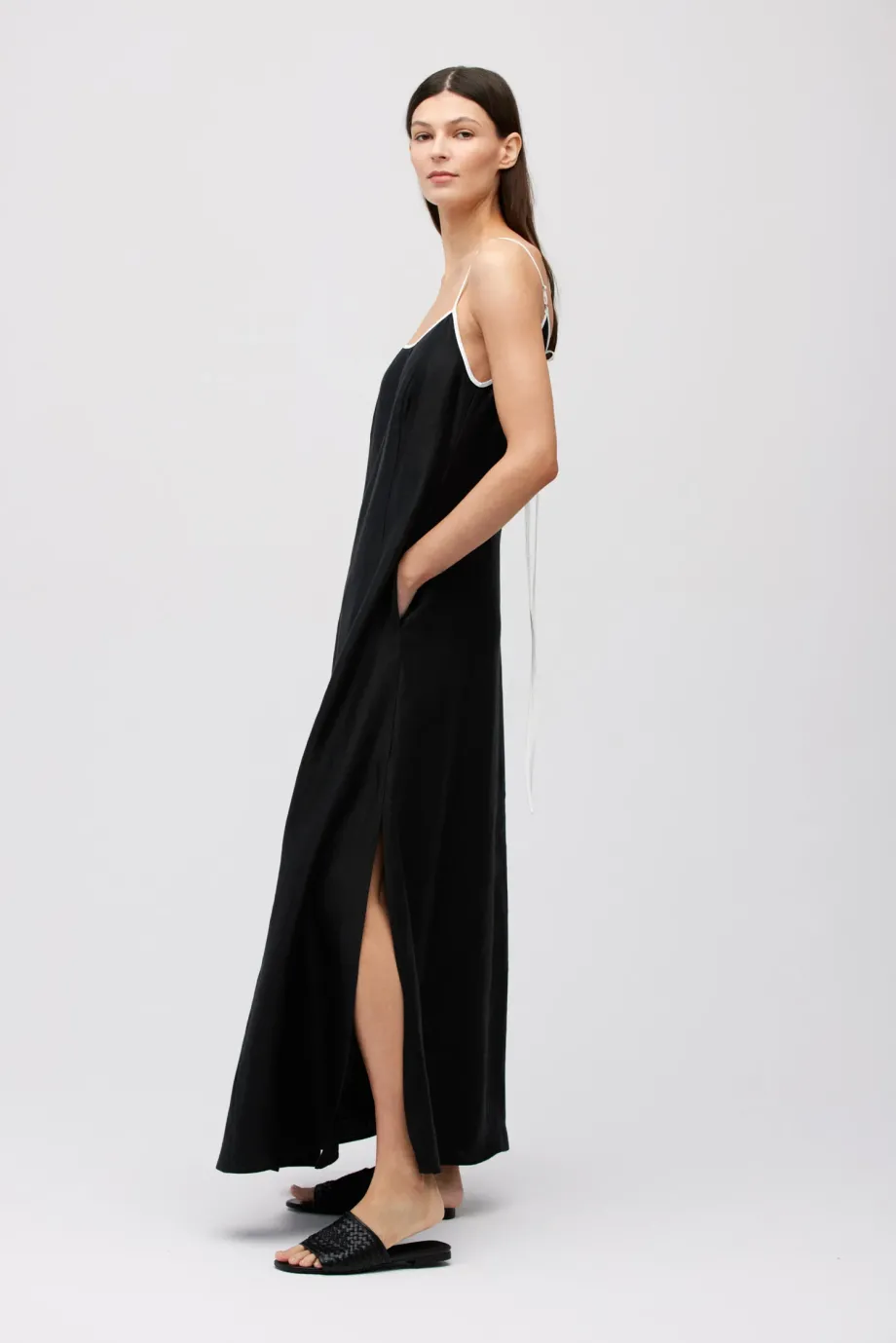 - Černé maxi šaty z lnu na nastavitelných ramínkách