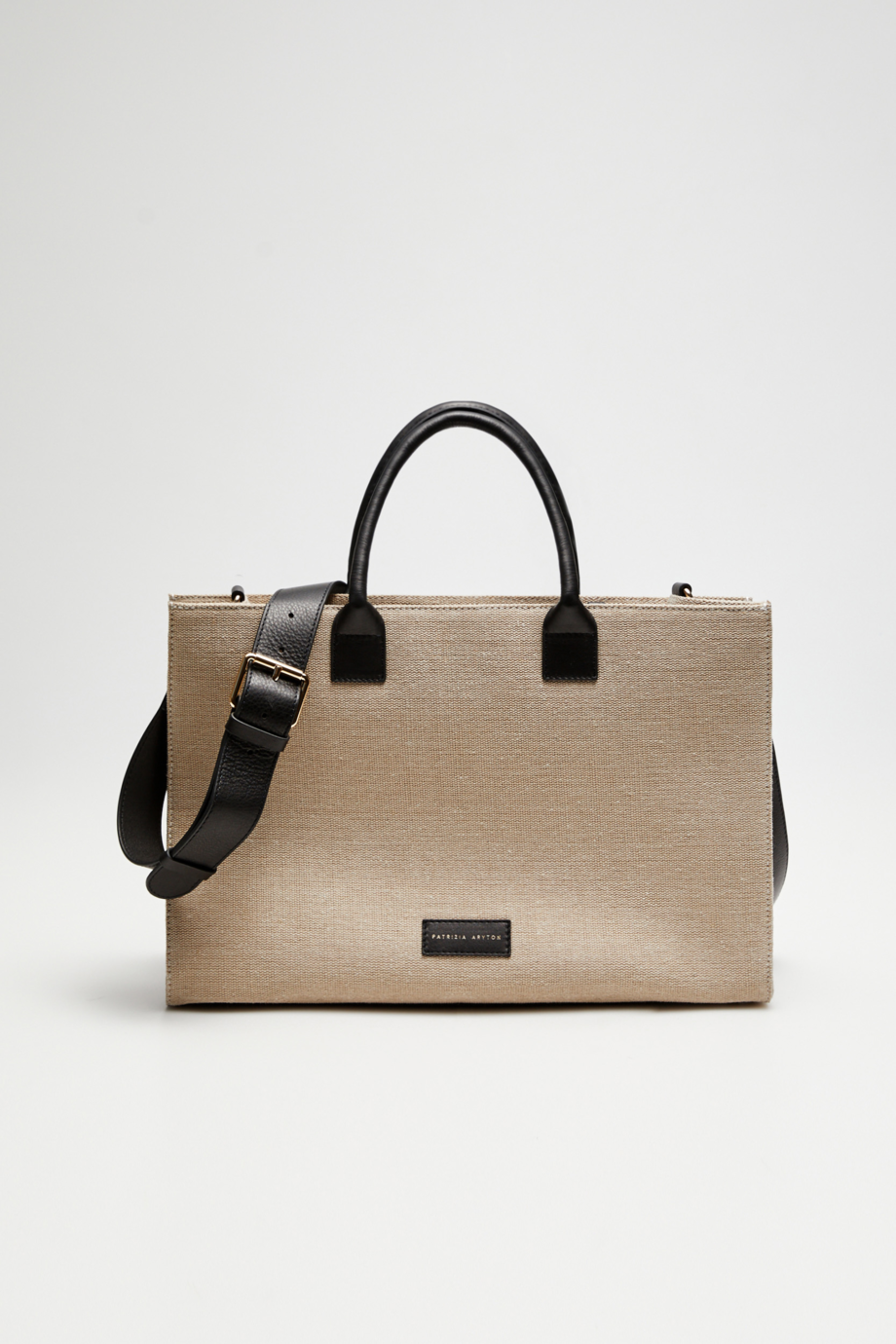 - Krátké kožené rukojeti a dlouhý, nastavitelný ramenní popruh (odepínací)