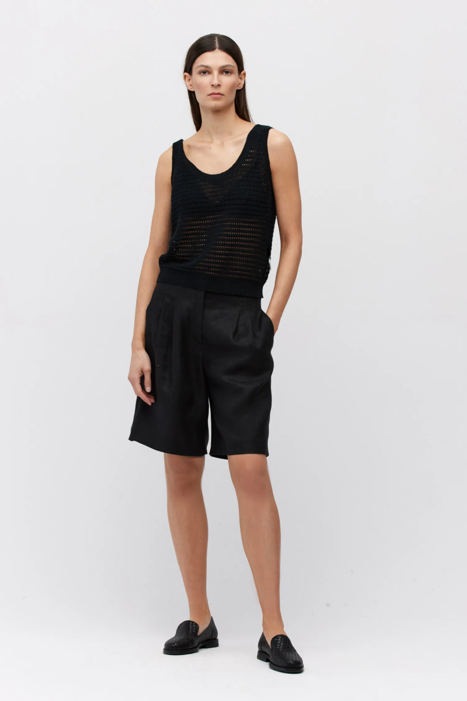 - Černé lněné šortky
