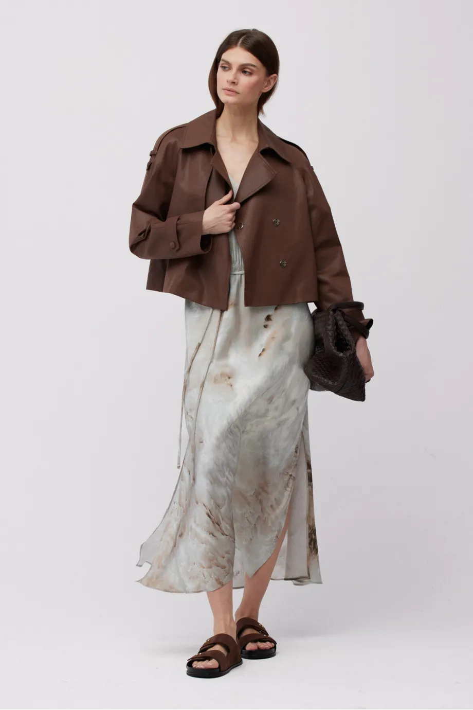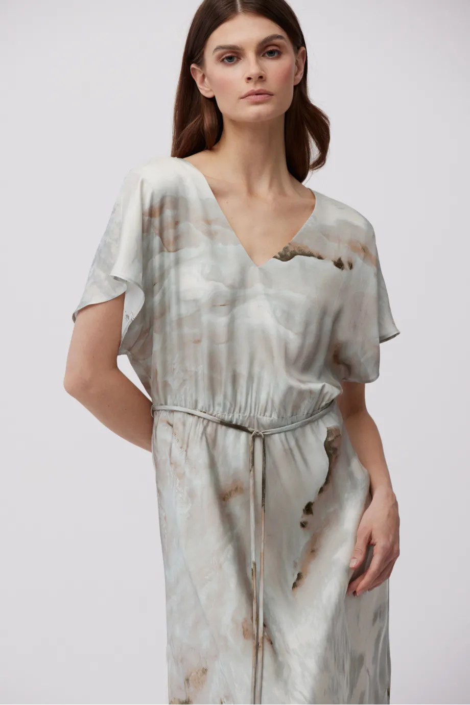 Modelka na fotografii má 177 cm výšky, nosí velikost 36/38.