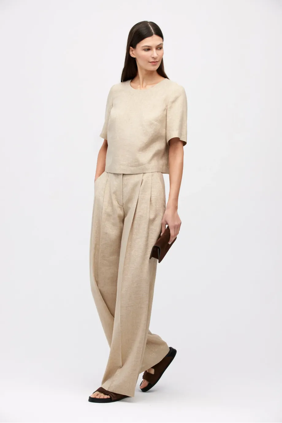 Béžové kalhoty s lnem