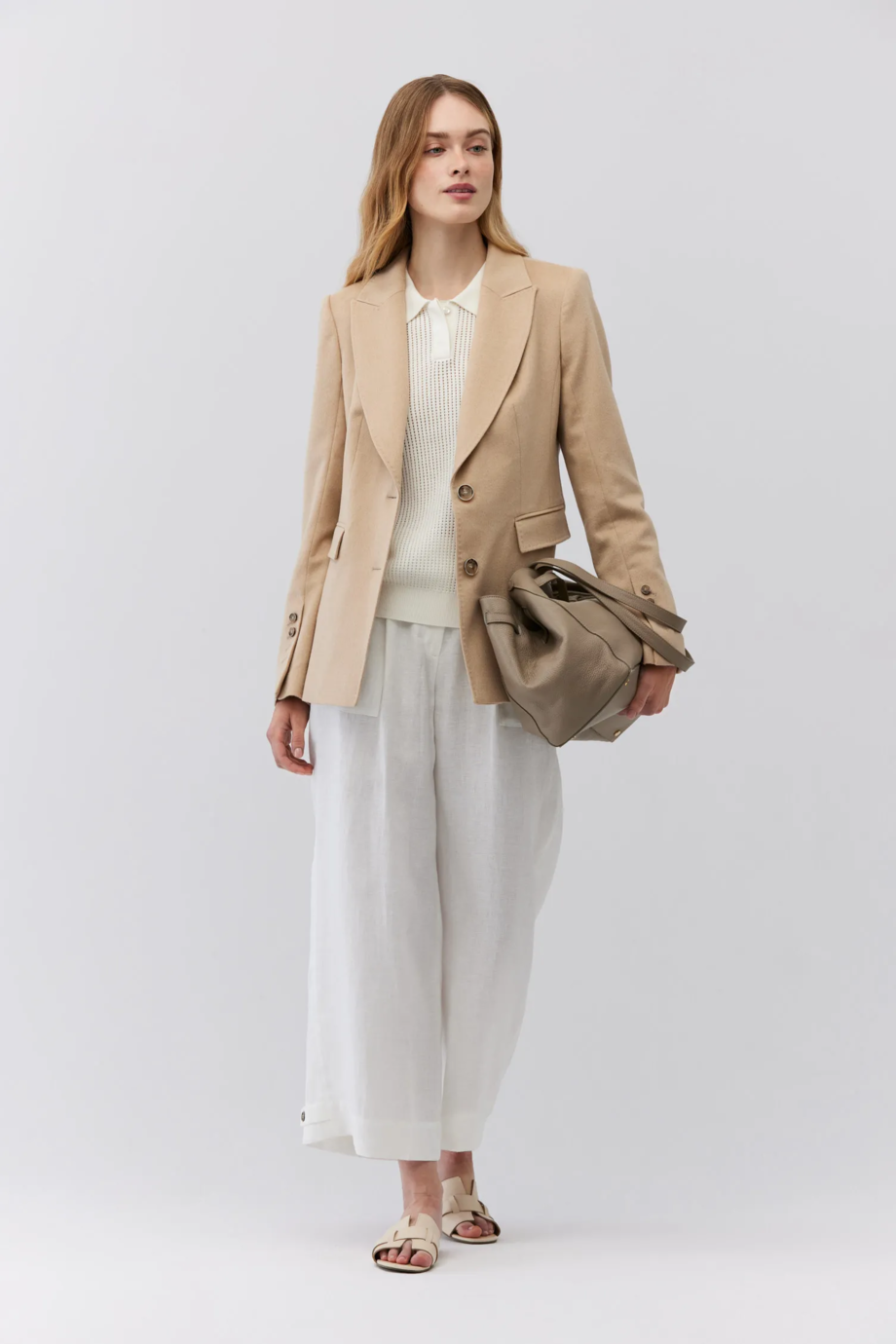 Bílé široké lněné kalhoty