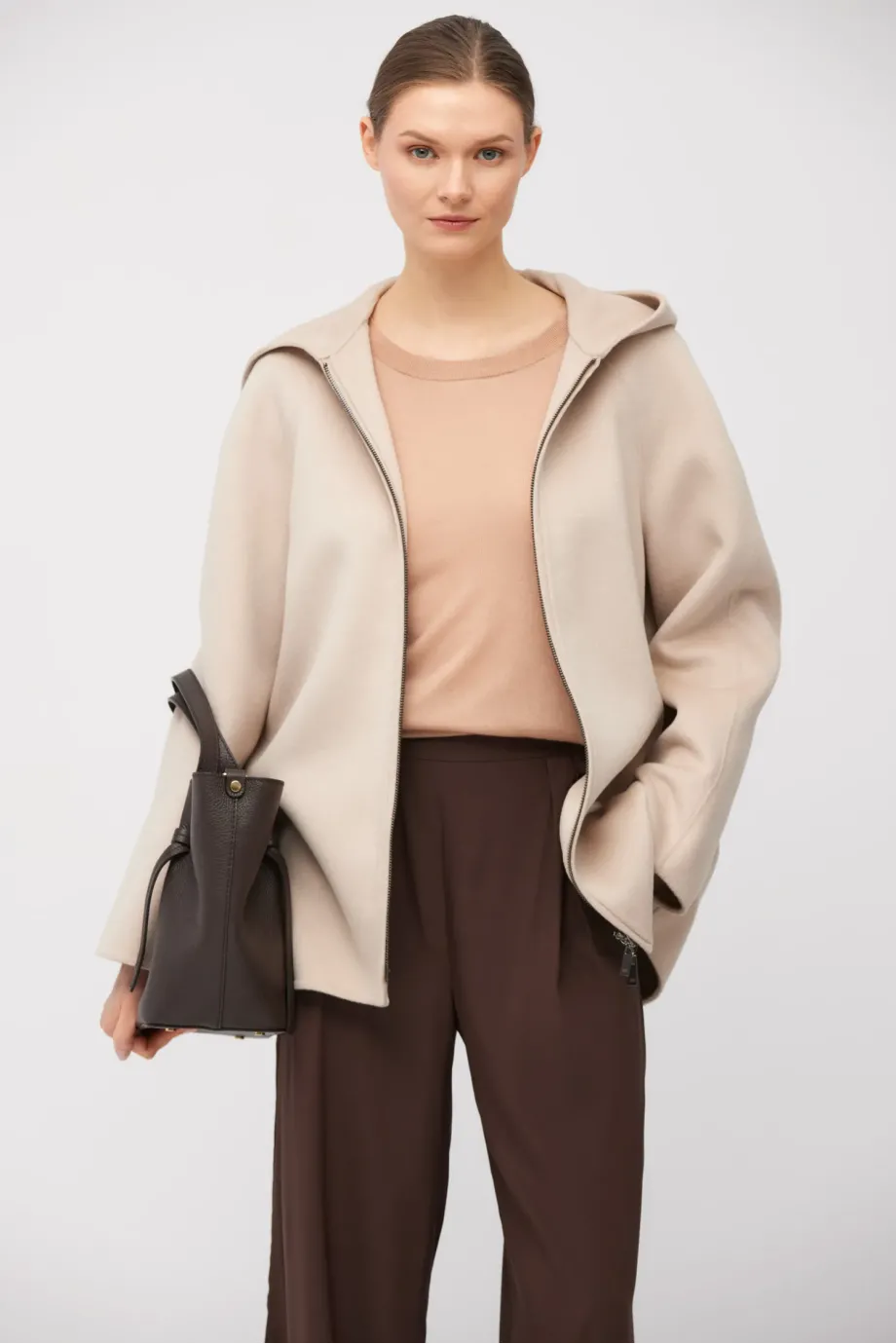 Pudrově růžové tričko s kašmírem a lyocellem