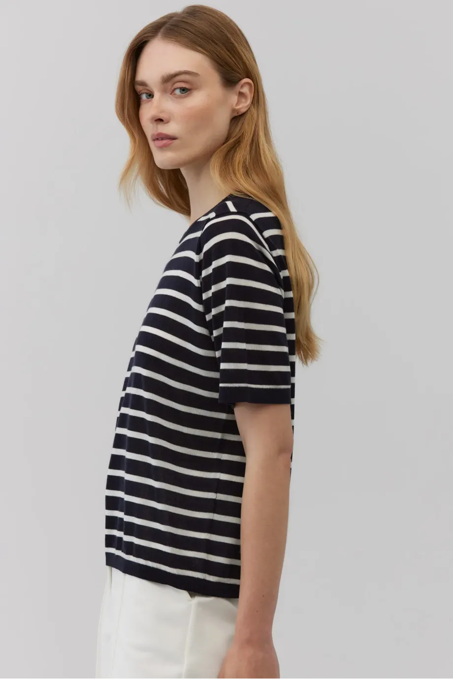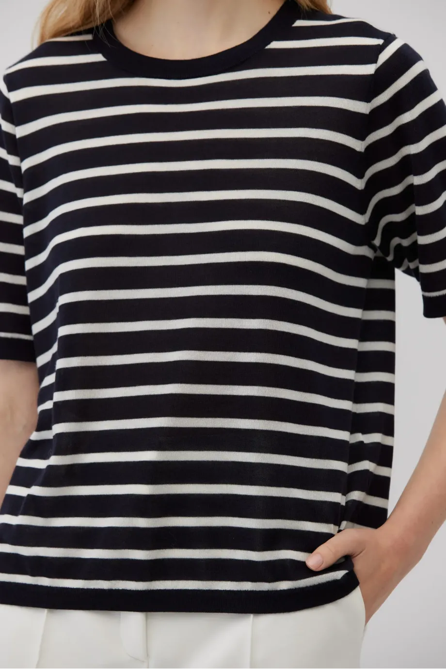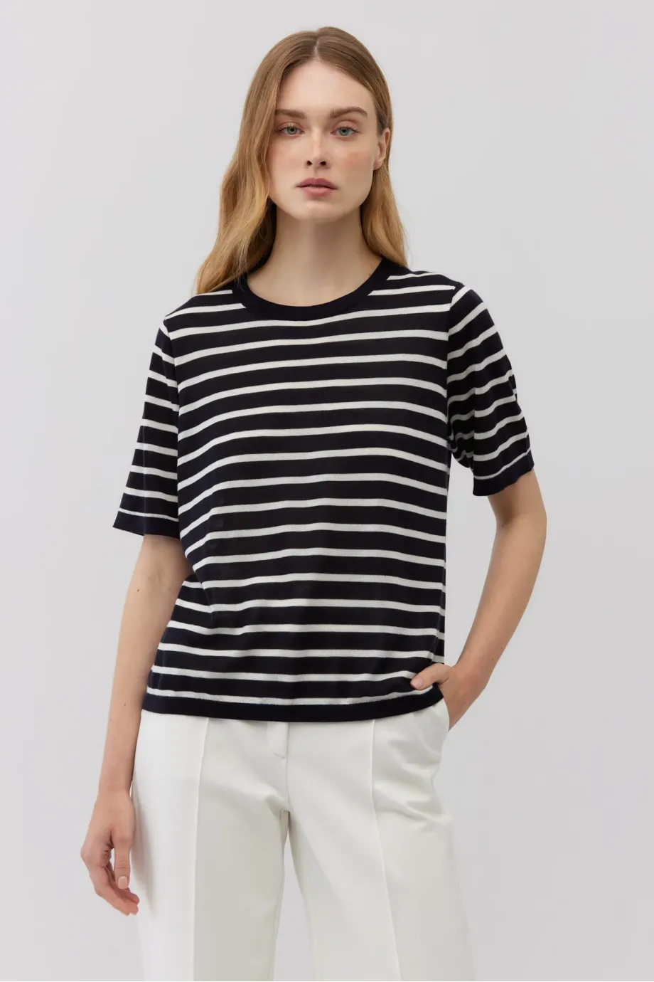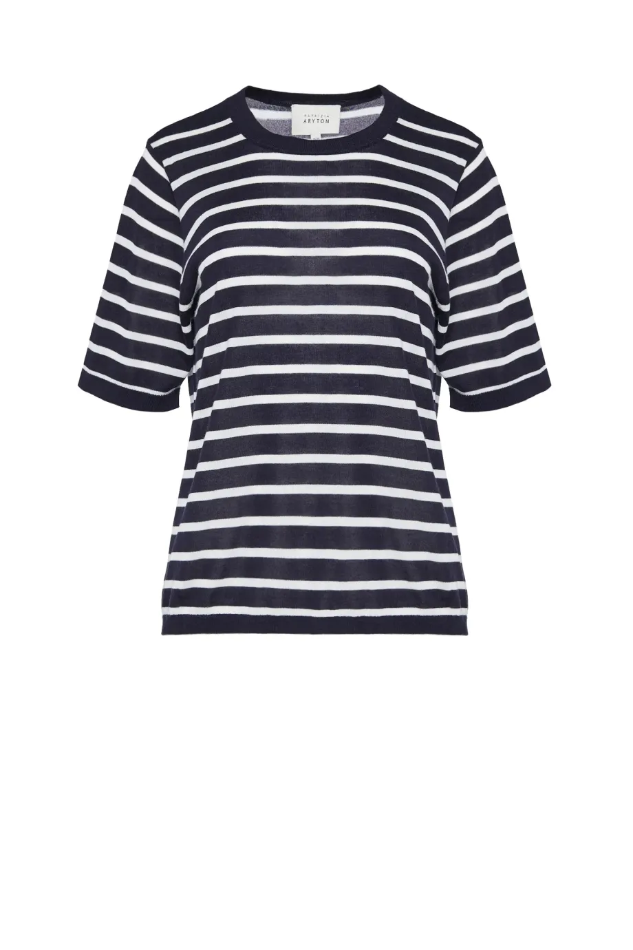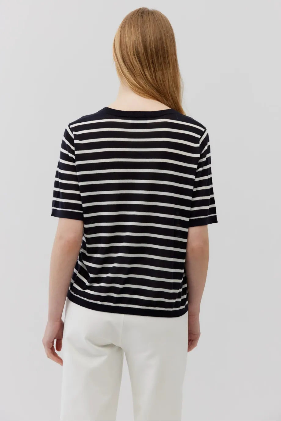 Tričko s bílo-navy pruhy z lyocellu a kašmíru