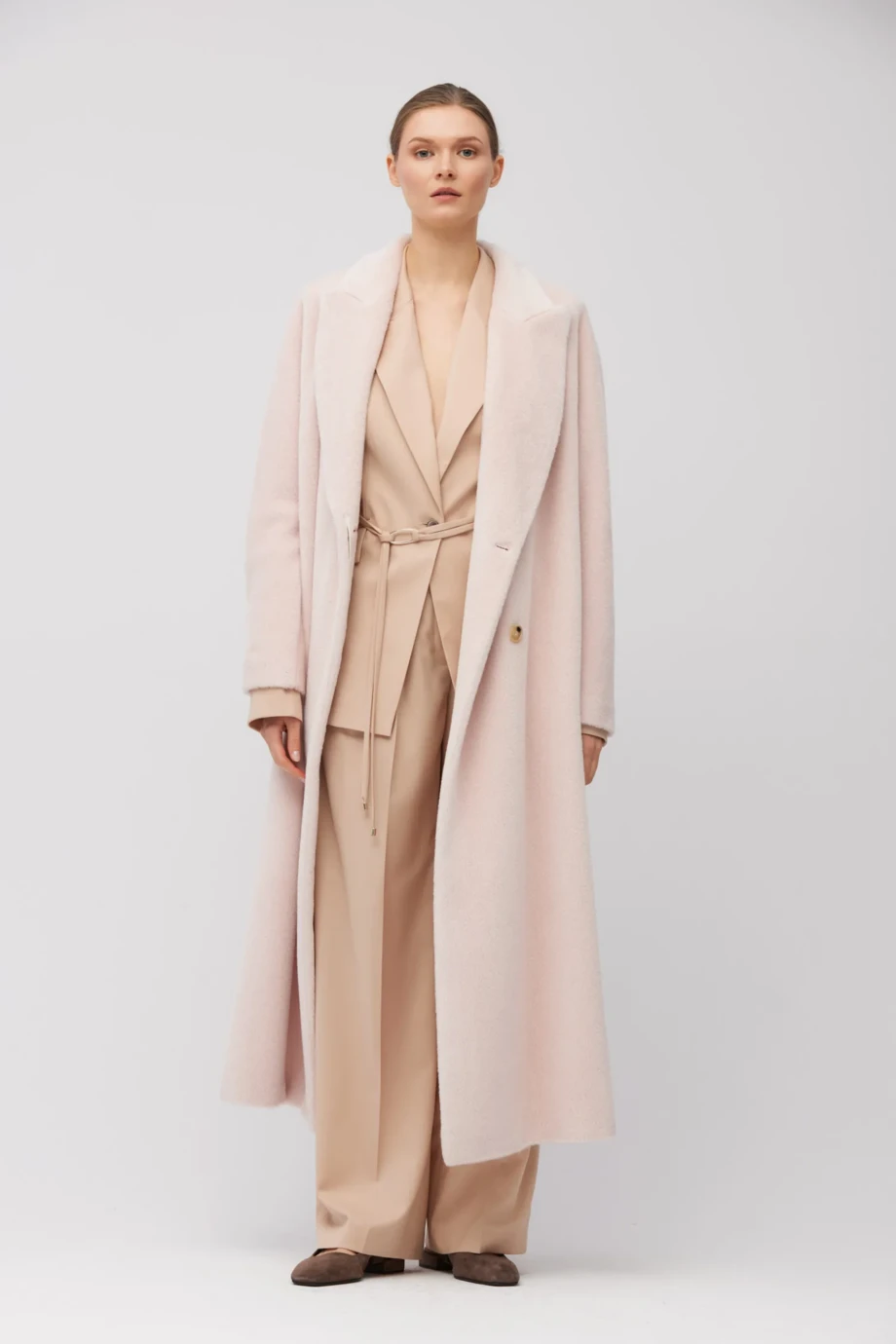 Dwurzędowy prosty płaszcz z baby suri alpaki