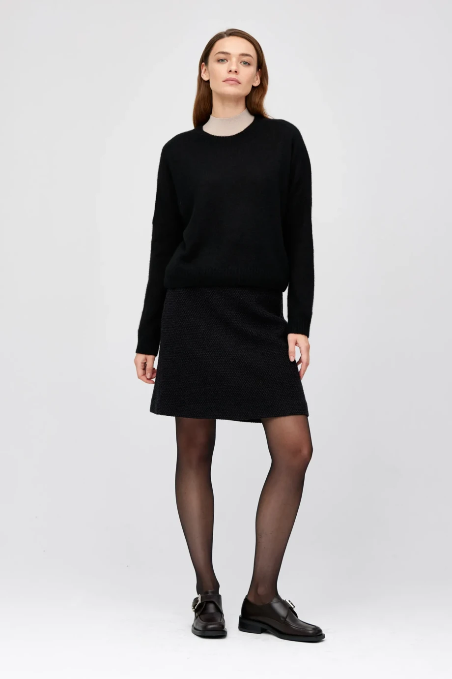 Jednoduchý střih s kulatým výstřihem a dlouhým rukávem. Měkká a jemná pletenina s kašmírem a hedvábím. Pletenina jersey knit vyrobená na stroji s nabídkou 7 GG.