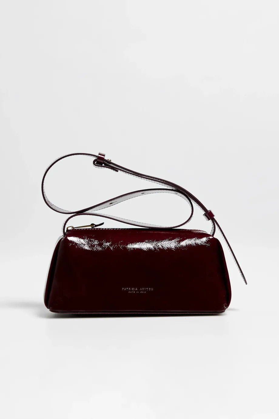 Malá taška z přírodní hladké kůže v barvě jeřabiny. Dlouhý, nastavitelný popruh. Zapínání a logo ve zlaté barvě. Vnitřek s malou kapsičkou na drobnosti.