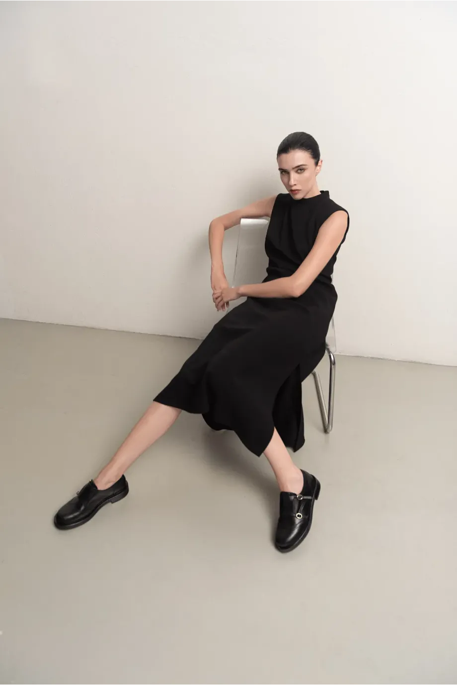 Czarne półbuty typu mnichvyrobené z přírodní kůže, s vyřezávanou dekorací a zapínáním na dvojité spony. Ručně šité v polské manufaktuře,