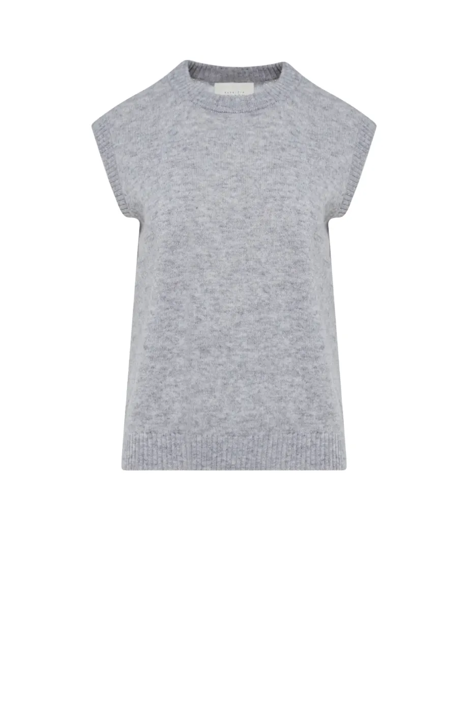 Šedý svetr z merino vlny a kašmíru, s jednoduchým střihem a volným fasonem. Krátký rukáv, kulatý výstřih, pletenina single jersey vyrobená na stroji s uigením 7 GG.
