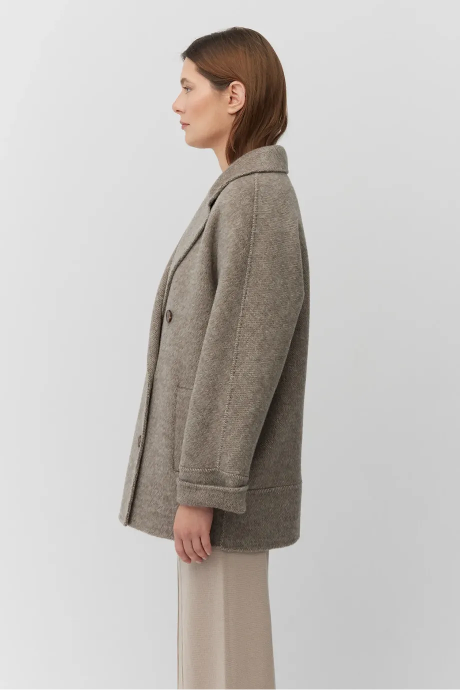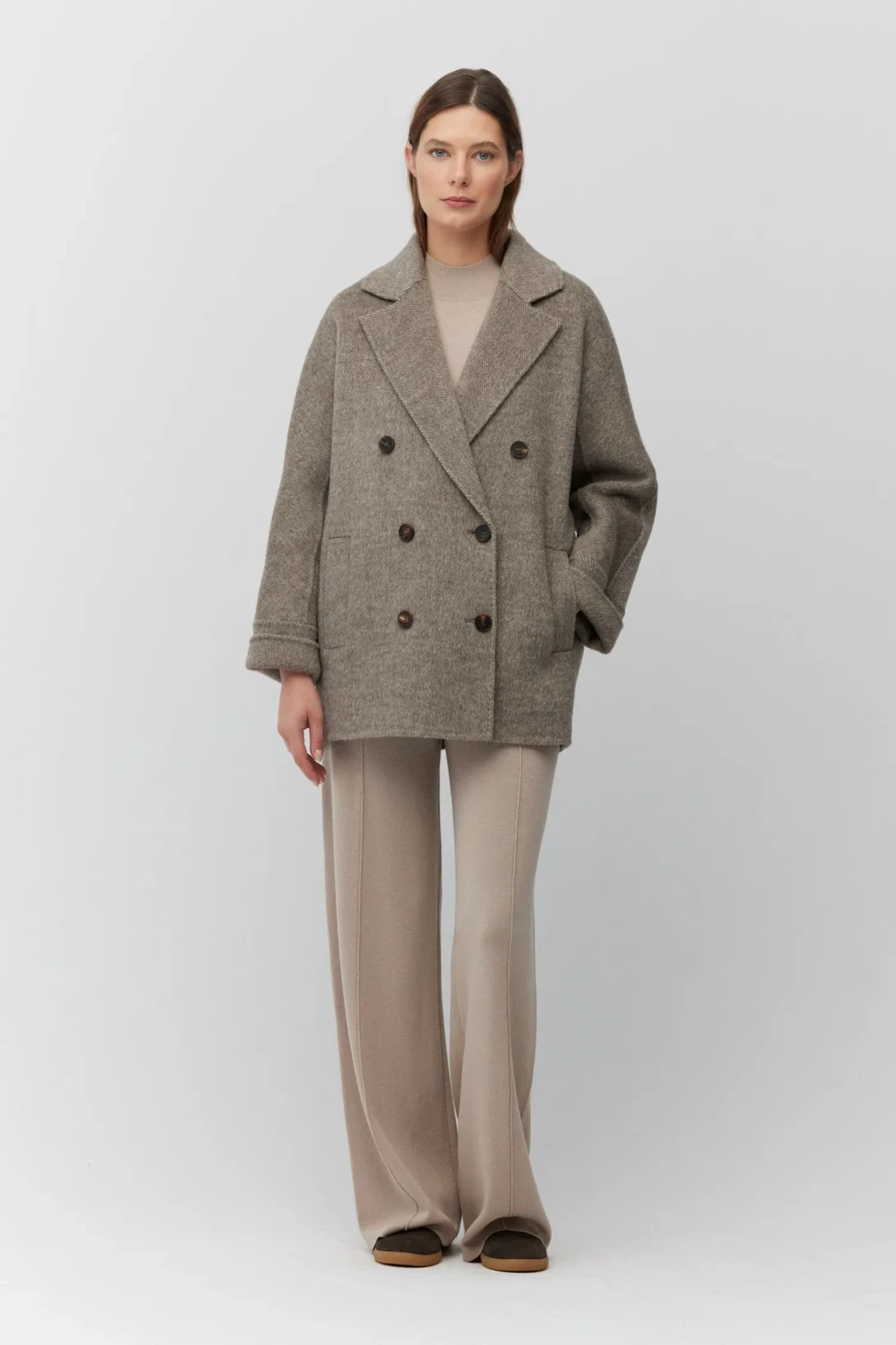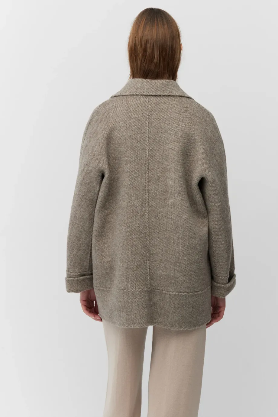 Hnědá oboustranná bunda s herringbonovým vzorem z alpaky