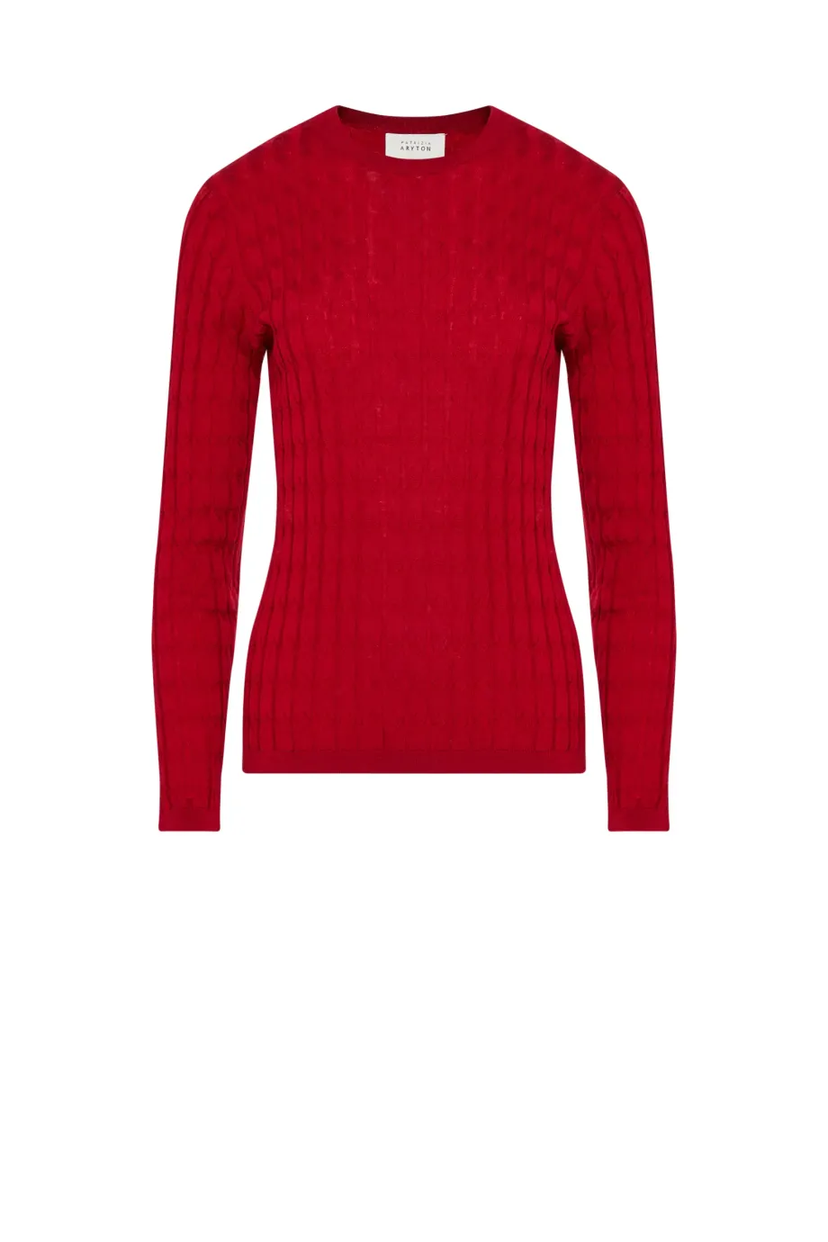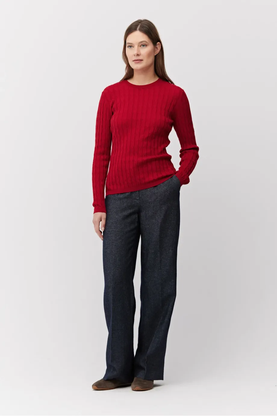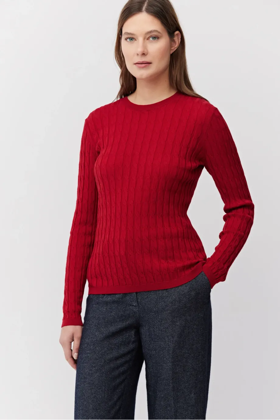 Halenka z merino vlny. Přiléhavý střih, kulatý výstřih a dlouhý rukáv. Pletenina s texturou cable knit, vyrobená na stroji s uíhlou 16 GG.