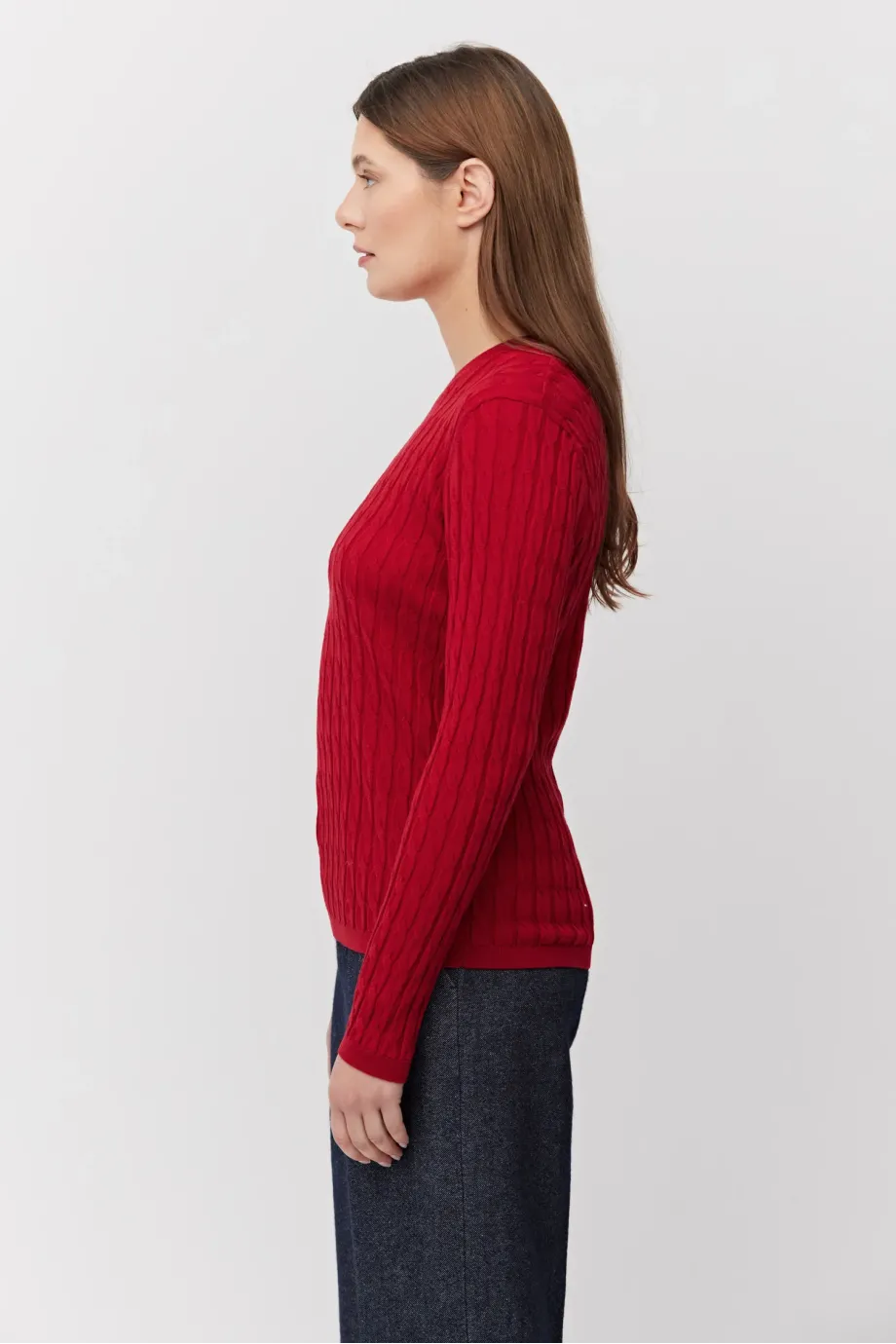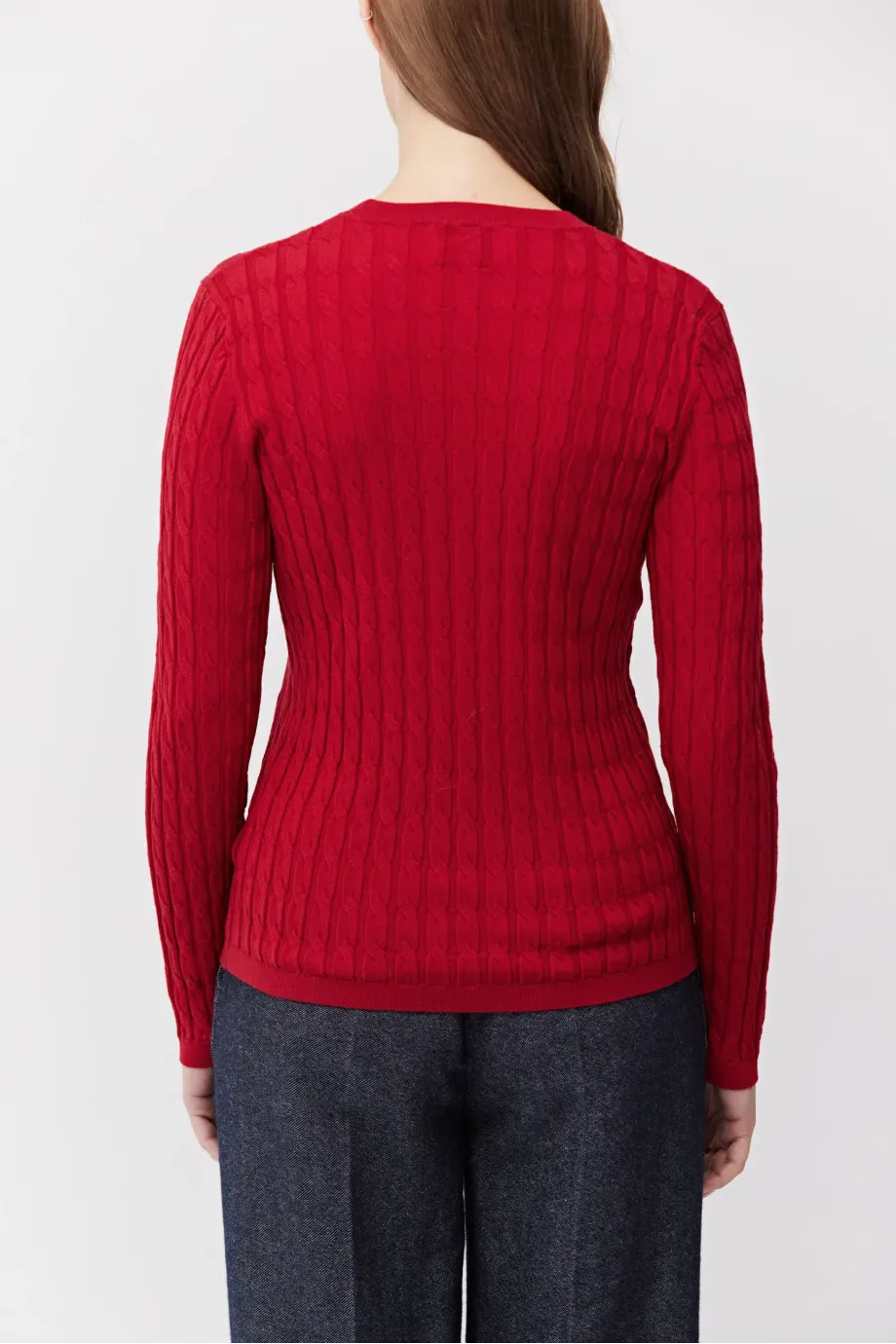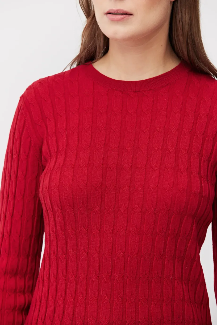 Halenka z merino vlny. Přiléhavý střih, kulatý výstřih a dlouhý rukáv. Pletenina s texturou cable knit, vyrobená na stroji s uíhlou 16 GG.