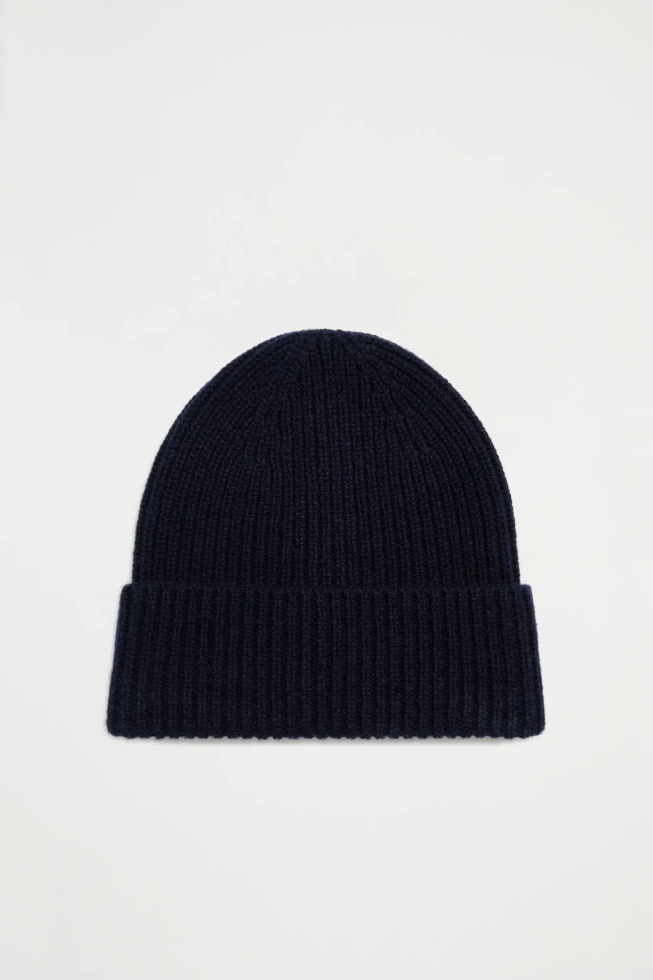 Čepice s příměsí kašmíru. Měkká pletenina, anglický rib. Barva námořnická modř.