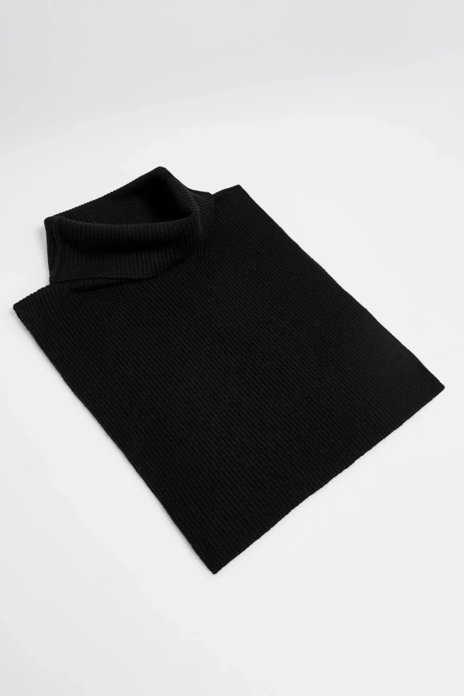 Černý nákrčník s rolákem. Měkká pletenina s kašmírem. Jemné tkaní half cardigan, vyrobené na stroji s uiglením 18 GG.