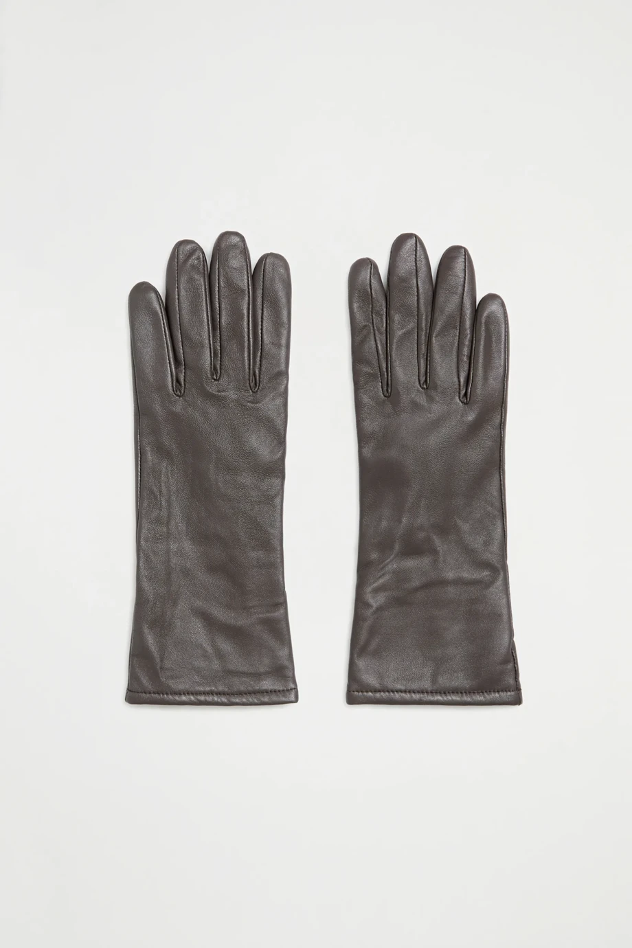 Hnědé, delší rukavice z měkké přírodní kůže, zateplené směsí vlny a kašmíru.