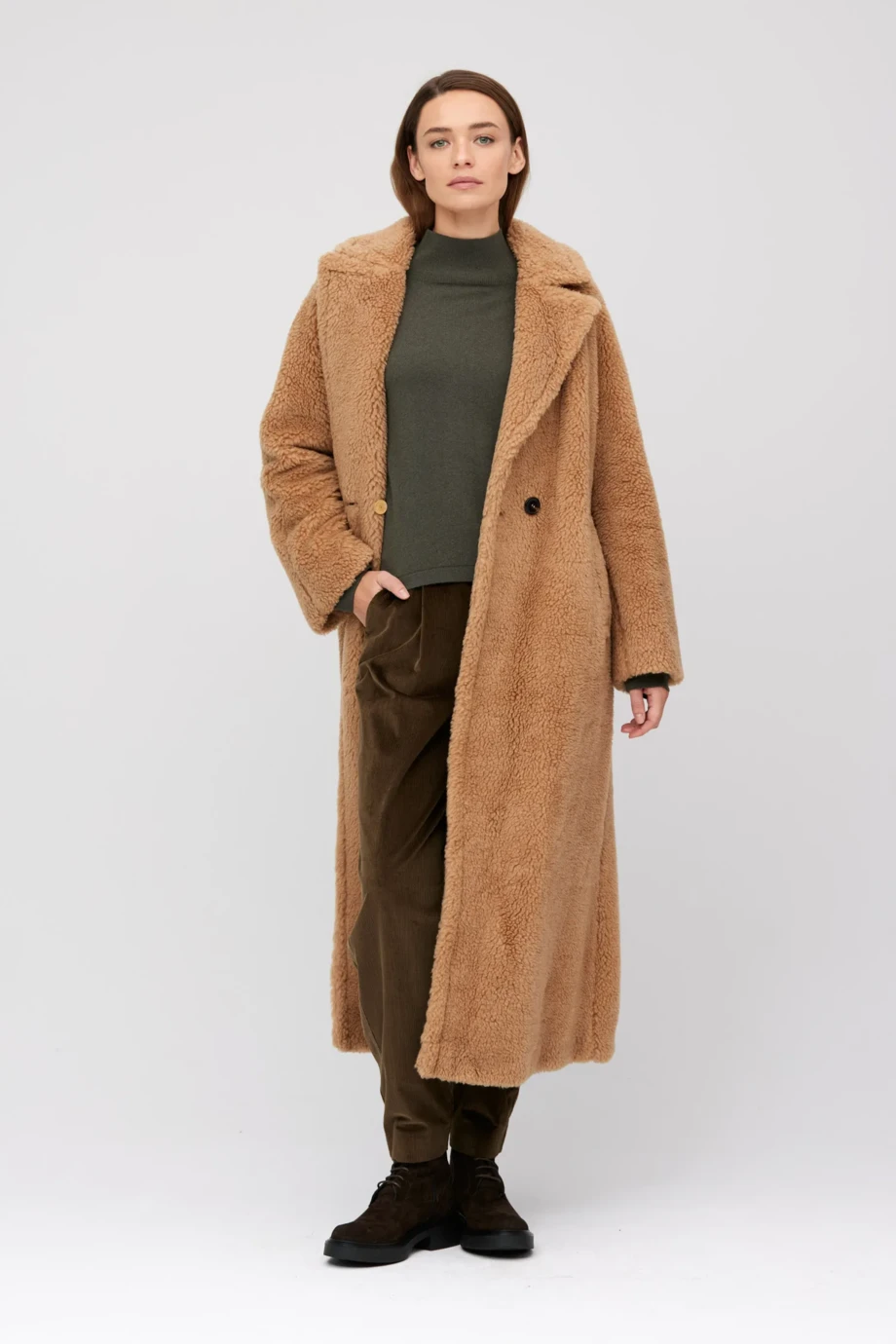 Kamelový kabát teddy bear s velbloudí vlnou a hedvábím