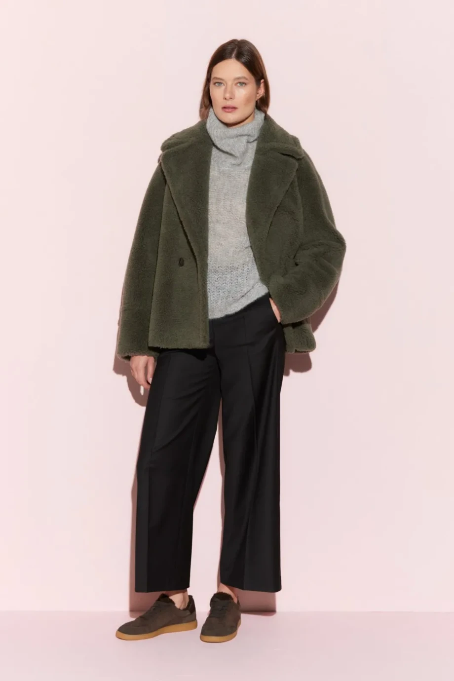 Tmavě zelený dvouřadý kabát z teddy bear vlny