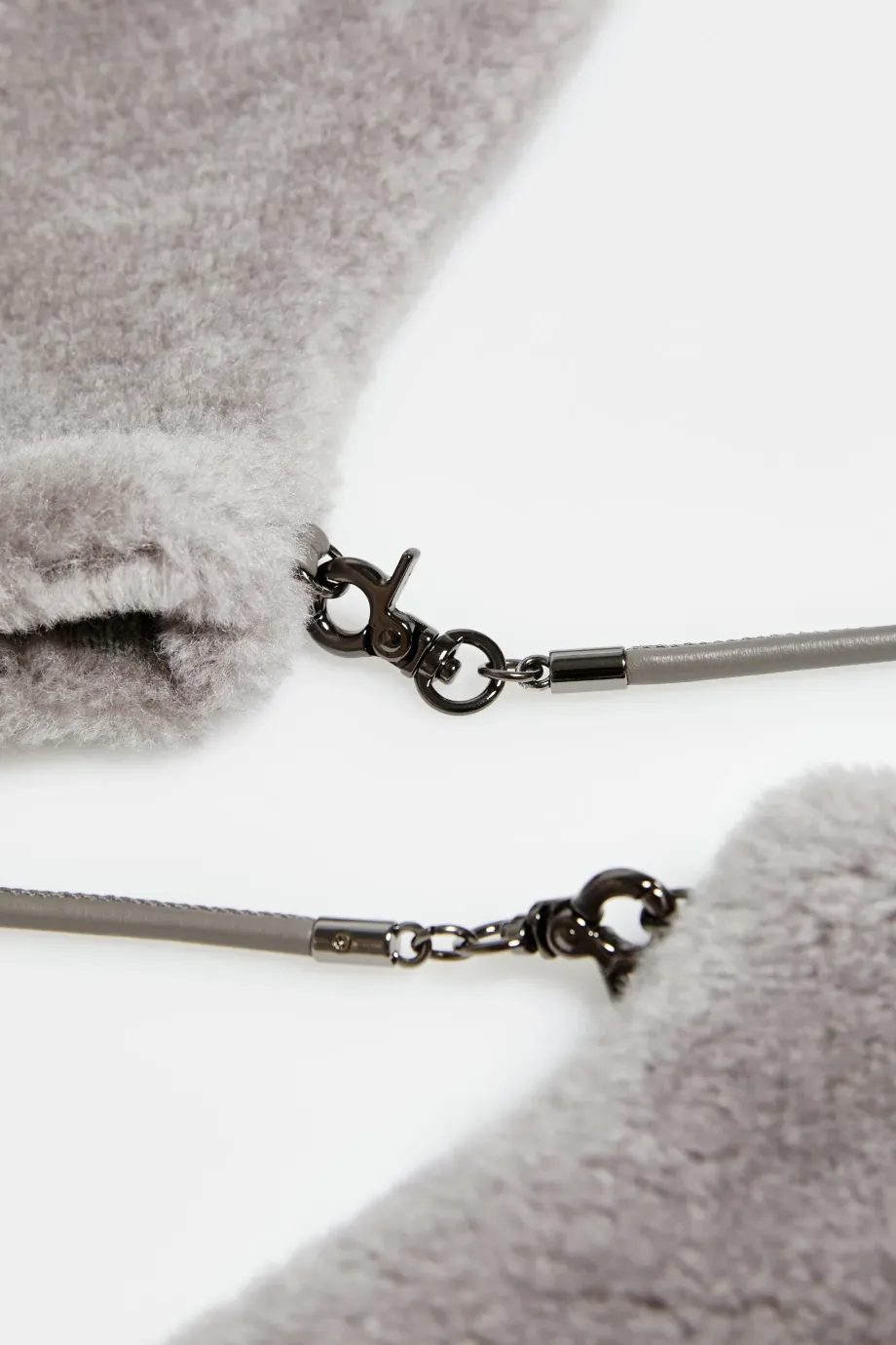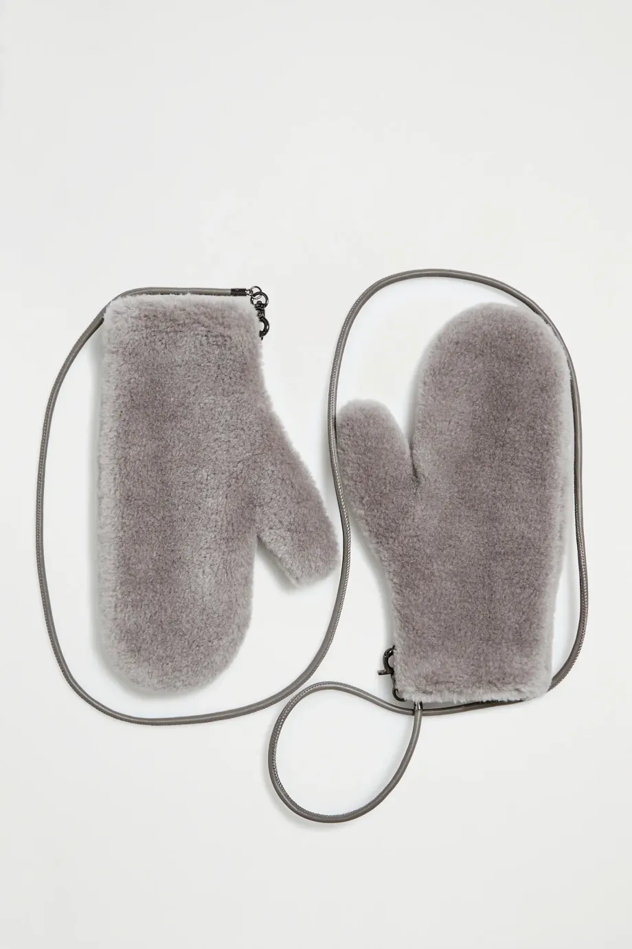 Rukavice z teddy bear vlny. Vlněná podšívka, odnímatelný kožený pásek. Šedá barva.