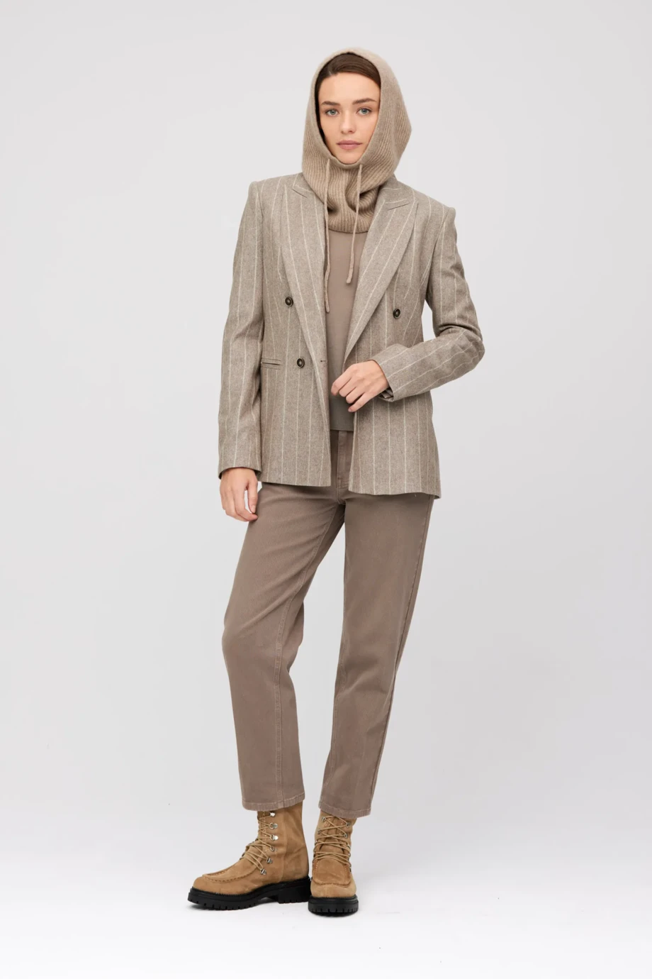 Žakiet v taupe barvě s proužky a příměsí kašmíru