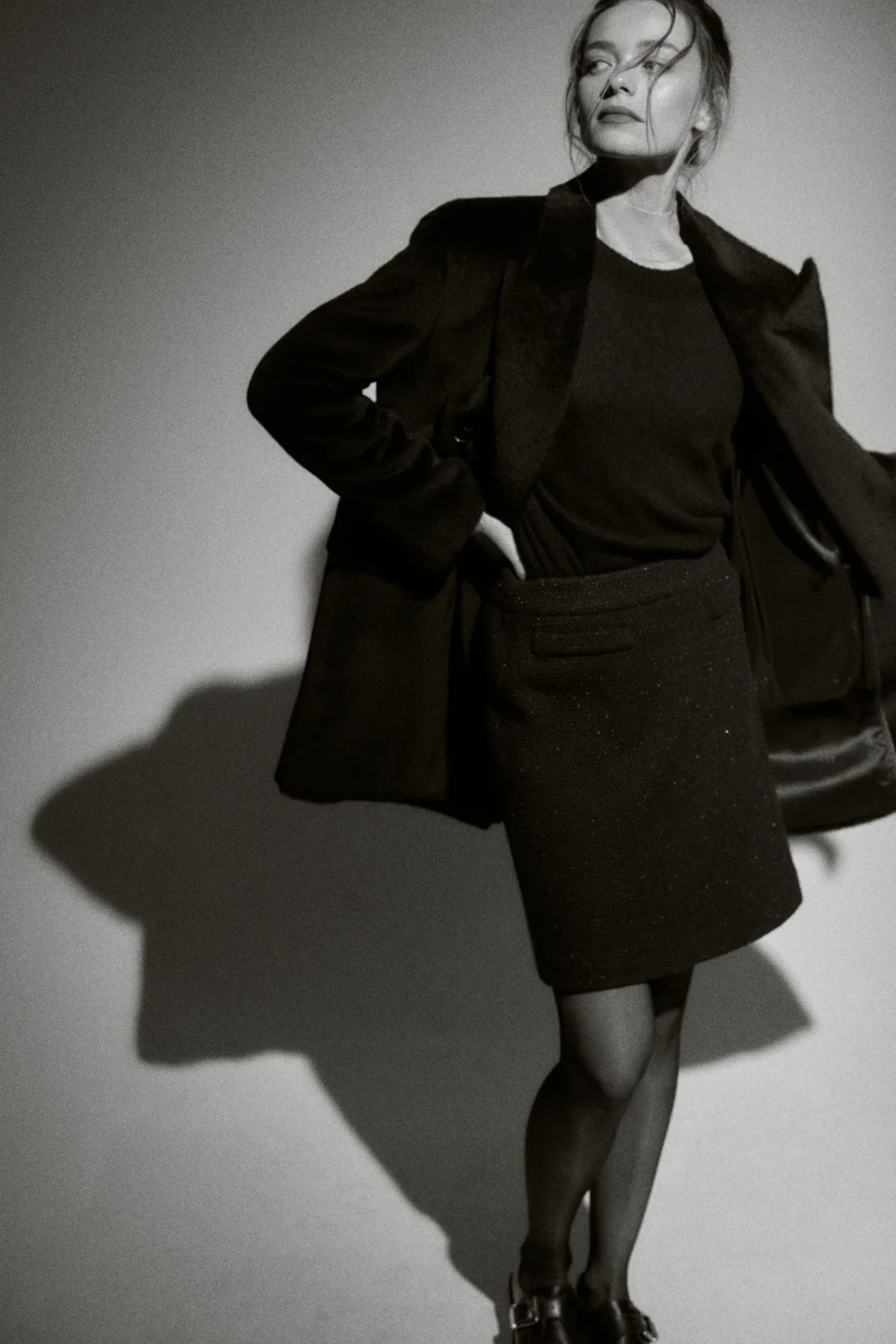 Modelka má 178 cm výšky, nosí velikost 36.