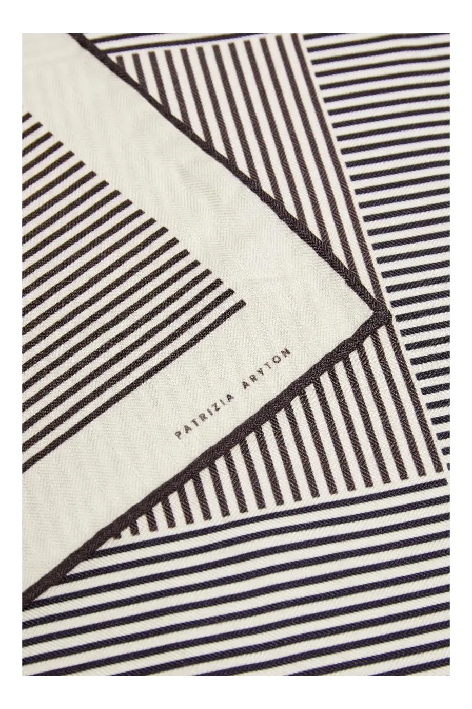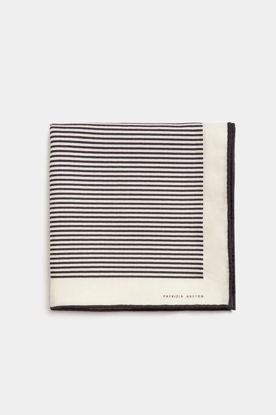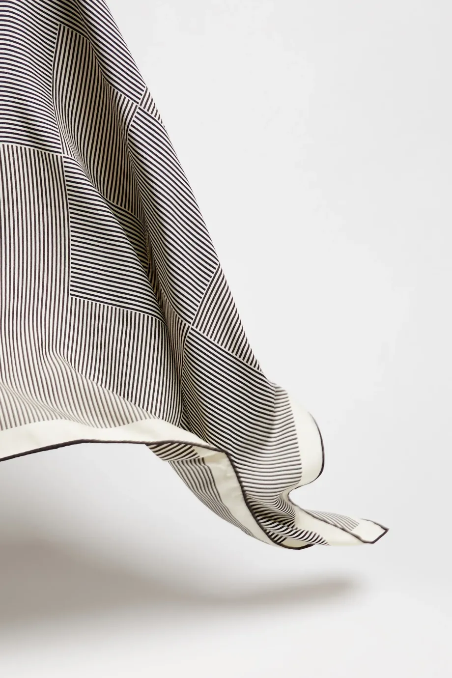 Šála z vlny a hedvábí s minimalistickým černobílým vzorem. Měkká a jemná na dotek.