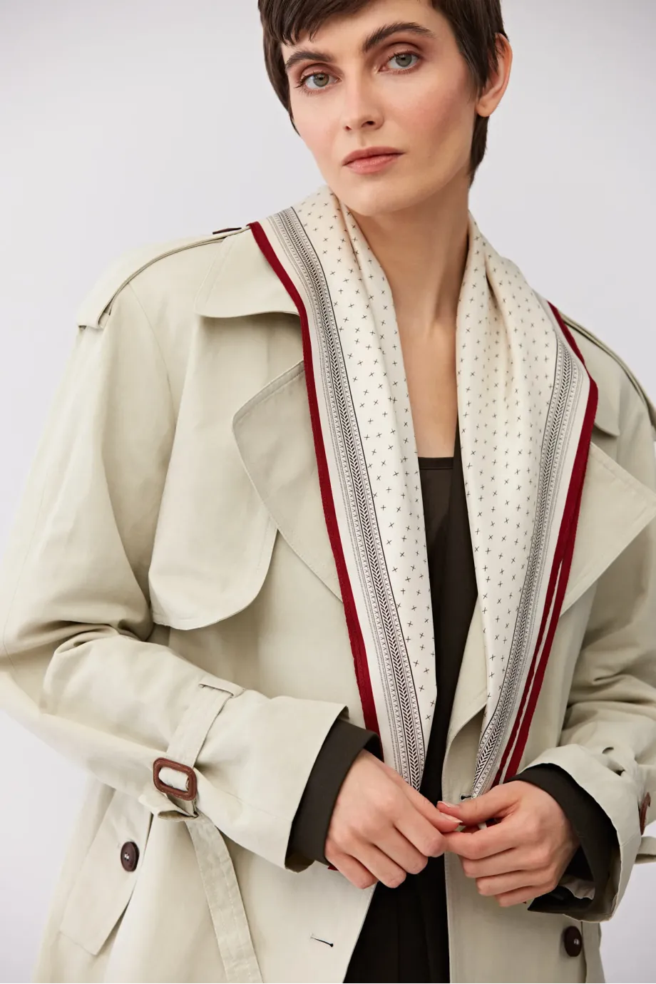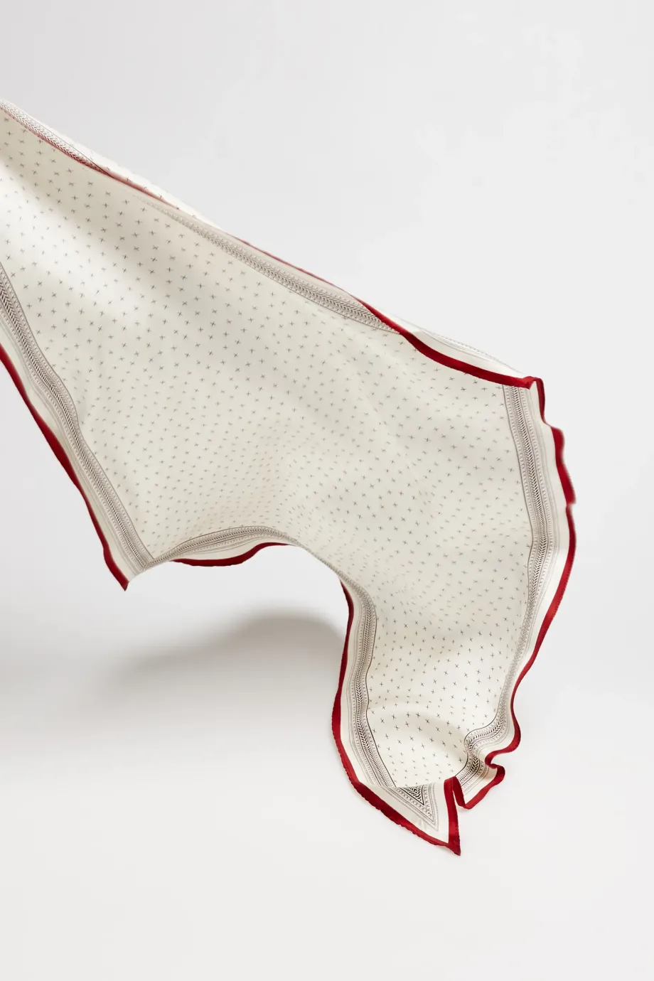 Hedvábný šátek s minimalistickým vzorem. Měkký, jemný na dotek.
